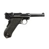 SEMI-AUTO PISTOL. Cal. 9mm Luger. S# 22444. Bbl. 4" w/ proper somewhat "fat" profile. Mfg. as 1 of 50 w/ in S# range of 22401-22450. Created for U.S. trials as 1 of 1st Lugers to be chambered for 9mm Luger. They were obtained as an exchange for Model 1900 U.S. test Lugers deemed inadequate due to "small" 30 cal. chambering. They were mfg. w/ cartridge counter feature requested by U.S. Board of Ordnance & Fortification; officially called Powell Indicating Device recognizing its American designer. Left grip fitted w/ window having metal strip numbered 1-7; left side of mag. additionally slotted (normally solid) having sm. pin w/ horizontal groove installed into follower to indicate no. of cartridges remaining. Mags. were tin plated w/ wood bases having metal disks in dimples. Some bases were not marked, others w/ "Cal. 9m/m"; to the untrained they appeared to be a Swiss mag. as those had tin plated bodies & characteristic wood bases w/ metal disks. In fact, very early Luger book by Fred Datig alluded to the fact that cartridge counters were of Swiss design due to distinctive bases. Recognized expert Jan Still shows his example in his book of Imperial Lugers having S# 22443. Some examples w/ photos available have the cartridge counter legend shown w/ yellowed tone. This one very distinctive w/ bright silver appearance & proper black numerals. Proper early old model features include: grip safety, flat mainspring, dished toggles, early flat top extractor, no stock lug, wide trigger guard, strawed sm. parts, fin shaped front sight & S#"s in commercial locations plus short frame & receiver. All were refinished after modification for cartridge counter feature. Thumb safety area is not marked yet very faint outline of area that would have been polished bright. Matching numbered parts identified using last 3 digits on grip safety, side plate, receiver (on lug) & toggle assembly rather than usual 2 digits. However, takedown lever, trigger & right grip (penciled) numbered 44 along w/ grip markings of "D" on right; "G" on left. Full S# on bottom of bbl. Standard DWM on toggles & American eagle over chamber. Firing pin milled flat on portion viewed in breech block slot; finish of machining matches balance of firing pin. MAGS: 1 very good correct 8 rd. cartridge counter. UNATTACHED ACCESSORIES: sm. very good black leather grained synthetic attache style case w/ leather handle & dual locking latches (no key). Royal blue velvet like padded interior. All aspects very good to excellent except slight peppery oxidation on plated metal parts. CONDITION: very good overall appearance of rare Luger pistol. Most metal parts have typical high point wear as would be expected from use & holstering. Some typical thinning is at top of sights, at muzzle, edges of front frame rails, edges of trigger guard, some high points of receiver & of course the side plate. Both grip straps have patina appearance w/ extra finish loss on front strap yet grip safety has very good appearance w/ only slight pinprick oxidation. Occasional light pinprick oxidation scattered throughout. Fading of strawed parts w/ staining on thumb safety & slight gray tone to trigger & mag. release. Best appearing strawed part is extractor. Good grips w/ left having best appearance plus professional restoration to Powell Indicating Device; very sm. chip at top rear. Right grip w/ more diamond top wear plus extra rub wear near grip screw. Both grip screws have been shortened w/ marks on ends of shafts. Fair worn bore w/ dark pitting in grooves. Exceedingly rare significant Luger that would be the focal point of any advanced collection. (20-896/NW). CURIO. $30,000-45,000.