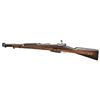 Cal. 7.65 Arg. S# C5265. Bbl. 17 3/4". Matching numbers on bolt, rear band, bbl & floorplate. Front band is numbered "256", stock number is faint & rear sight appears mismatched. Top of receiver marked w/ Argentine crest. Left side of receiver has DWM & Argentine markings. Ladder rear sight graduated to 1400m. Blade front sight w/ protective ears. Two bands w/ bayonet lug for Rolling Block bayonet. Walnut stock set w/ left side sling swivels. Saddle bar behind trigger guard has been filled in w/ arsenal added steel filler & two screws. Leather sling present. CONDTION: arsenal reworked stock set has a large armorer repair at bottom of butt, a tight crack behind upper tang, a crack at front of handguard, scattered dings & handling marks. Metal is a silvery gray patina w/ some spots of light pitting & oxidation. Worn bore w/ scattered frosting & pitting. (23-1932/MJC). CURIO. $400-700.