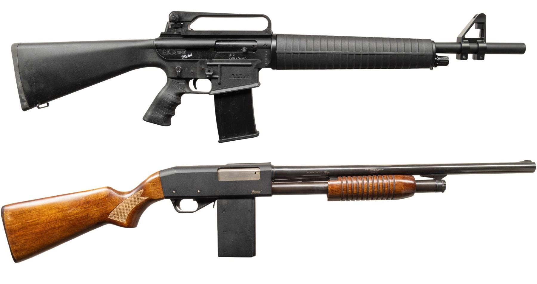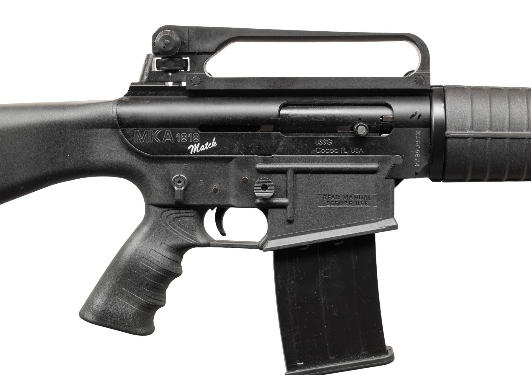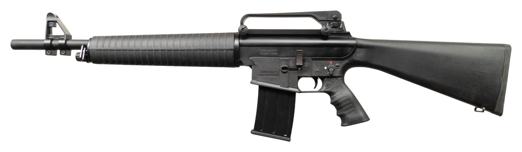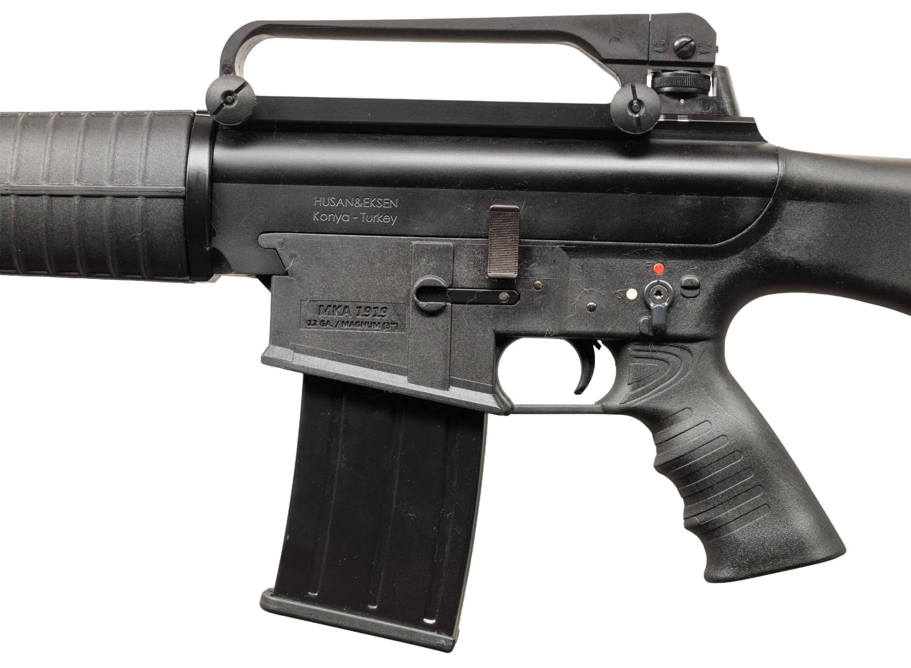 2) TURKISH HUSAN & EKSON UKA 1919 MATCH SEMI AUTO. Cal. 12 Ga., 3". S# E1606824. Mfg in Konya, Turkey. This shotgun has an AR-15 profile with 19.75" bbl. A2 Style sights with carry handle on upper. Black synthetic forearm with integrated lower & buttstock with black pad. MAGS: 1 -10 rd. CONDITION: near excellent overall; shiny bore. PROVENANCE: From the PMRB Collection. (25-5830/MD). ALL MODERN. $600-1,000.