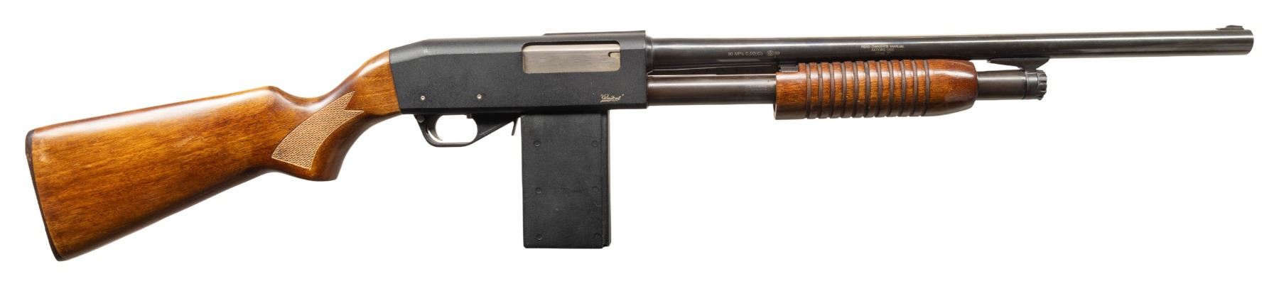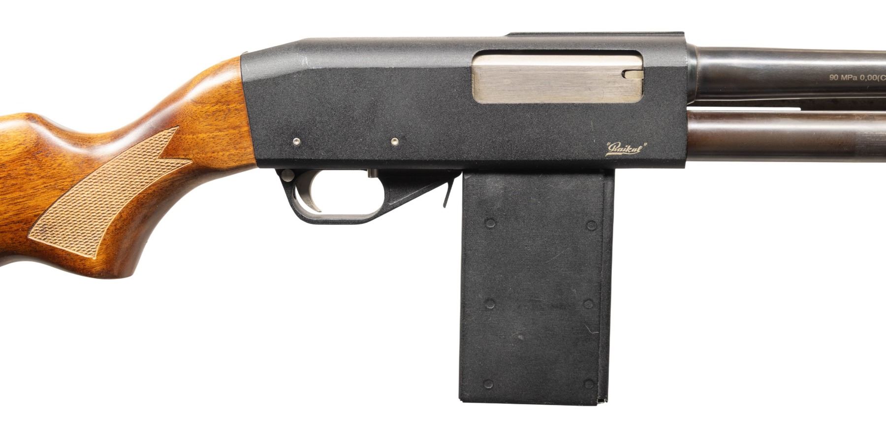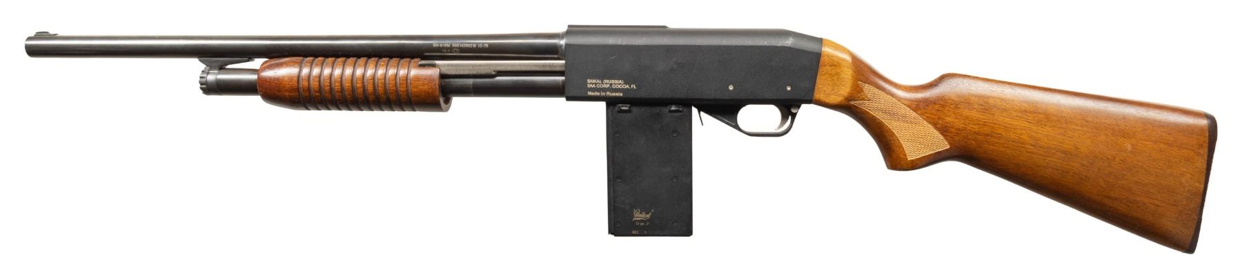 1) RUSSIAN BAIKAL IZH-81KM PUMP. S# 998142862B. Bbl. 20" w/ blade front sight. Hardwood stock set. CONDITION: very good overall appearance with handling marks. Shiny bore. (25-5805/MD).
