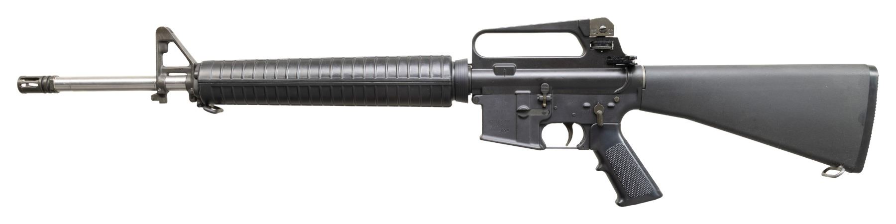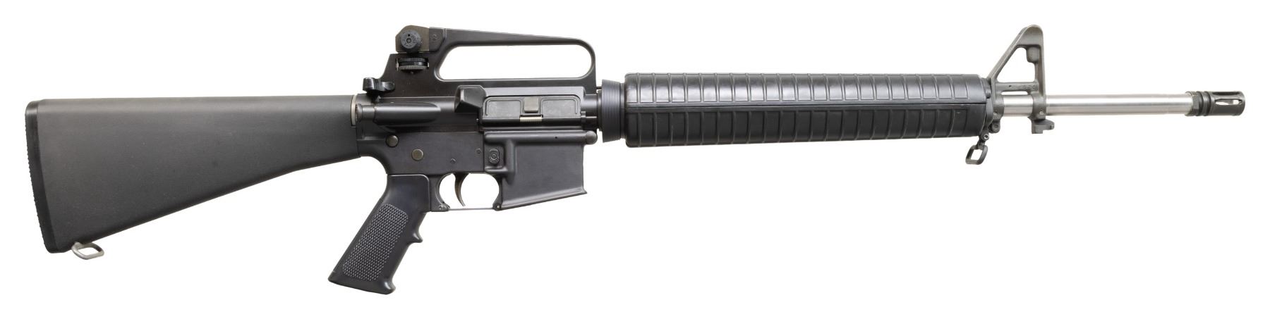 AUTO RIFLE. Cal. 5.56mm (5.56 NATO). S# 4054. Stainless finished, heavy profile 20" bbl. with A2 flash hider. Front sight base has bayonet lug & protected post front sight. Upper has carry handle having A2 rear sight, shell deflector & forward assist. A2 finger groove grip. Black composite ribbed handguard has sling swivel on cap & delta ring. A2 black synthetic buttstock with trapdoor buttplate & sling swivel. MAGS: NONE. CONDIITON: rifle has near excellent overall appearance showing minimal cycling or handling wear. Shiny strong rifling. (25-2717/MD/JZ). MODERN. $700-1,100.