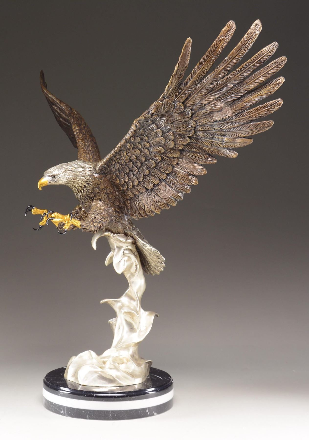 EAGLE LANDING POLYCHROME BRONZE SCULPTURE SIGNED