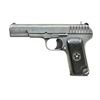 Cal. 7.62x25mm. S# 31033154. Bbl. 4.6" Mfg.1956. A Chinese variant of the Russian TT-33. Manufactured in Factory 626. Chinese marked slide, matching to frame & barrel. Heavy serrations on slide. Blade front sight w/ dovetailed rear notch. No thumb safety as on imported models. Left side lanyard loop below left grip. Grips marked w/ star & CCCP. No import marks. No thumb safety as typical of later, export models. MAGS: 2 steel 8 rd. UNATTACHED ACCESSORIES: brown leather holster w/ spare mag pouch & internal cleaning rod. CONDITION: the vast majority of original finish is gone, w/ a grey tone remaining. Bright bore w/ strong rifling. Fire control mechanism appears to function correctly when cycled by hand. (22-5687/JZ). CURIO. $400-700.