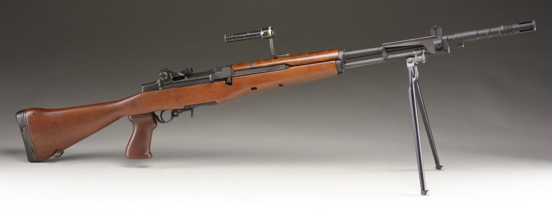 SELECT FIRE RIFLE. Cal. 7.62 NATO. S# X000197. Bbl. 19". Heavily resembling a crossover between the M-1 Garand & the M-14, the Italian BM59 is a creature all to itself. Bridging the gap between the 2 systems we have the receiver style of the M-1 Garand with detachable mag. capabilities of the M-14 in the 7.62 NATO cartridge. Housed in a hardwood stock w/ matching bbl. shroud & pistol grip. It has an interesting muzzle brake, sometimes referred to as a Tri-comp, doubling as a grenade launcher, also including a folding grenade sight system. A folding bipod providing over 11" of clearance, folds tightly under the forearm of the stock when not employed. The front sight is a protected blade style w/ a rear peep sight that is micro adj. for both windage & elevation. The receiver is designed to be top loaded utilizing stripper clips even though it utilizes a detachable 20 rd. proprietary box mag. The fire control selector is located on the front left side of the receiver w/ designations A-S for automatic & semi-automatic. Left rear portion of the receiver marked "SPRINGFIELD ARMORY’. Extreme rear of the receiver on top marked "P. BERETTA - 7.62MM BM59 – GARDONE VT – ITALIA – X000197". Right side charging handle. Folding Winter trigger. Safety is located internally at the front of the trigger guard. Left side folding carry handle at center point of balance, between sights. Shoulder stock utilizes a rubber buttpad. Sling swivels front & rear. CONDITION: exposed metal surfaces still enjoy complete coverage of original matte finish. Typical thinning on high spots & on areas of mechanical interaction. Wood stock has some impressions primarily on left side of shoulder stock, typically earned by vertical rack storage. All sights move freely & bipod properly intersects w/ designated positions on stock. Bore is bright w/ well pronounced rifling. Fire control mechanism appears to function correctly when cycled by hand. NATIONAL FIREARMS ACT MG REQUIRING BATF TRANSFER BEFORE TAKING POSSESSION. FULLY TRANSFERABLE. (03-1744/JZ). MODERN CLASS III. $13,000-18,000.