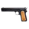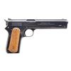 PISTOL. Cal. 38 ACP. S# 466. Bbl. 6". Semi-circular front sight w/ rear sights serving as hammer safety. Long slide w/o slide stop. Blue finish w/ case colored hammer & sight/safety. 2 piece plain walnut grips. MAGS: 1 detachable 7 rd w/ nickel finish. UNATTACHED ACCESSORIES: letter from Colt Archive Properties detailing the following information, "Serial Number: 466 / Caliber: .38/c / Barrel Length: 6" / Finish: Blue / Type of Stocks: Not Listed / Shipped To: C. J. Godfrey / Address: New York, New York / Date of Shipment: July 16, 1900 / Number of Same Type Guns in Shipment: 1". CONDITION: high condition first year production pistol. Over 80% lightly faded blue showing carry wear & scratches. Grips show light wear & marks. Bore has lightly frosted appearance retaining strong rifling. (24-966/DS). CURIO. $3,000-5,000.