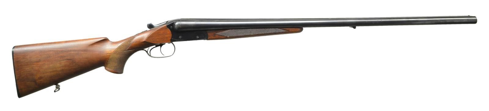 Cal. 12 Ga. S# 518219. Bbls. 28 3/8" matted solid rib w/ front bead. Chambers are 2 3/4" w/ chokes “CYL” & “CYL”. Matching serial numbers, dbl. triggers & extractors. Checkered splinter forend & pistol grip buttstock w/ raised cheek rest, sling swivels & 12 1/2" & 13 1/2" LOP. Importer marked. UNATTACHED ACCESSORIES: black plastic case. CONDITION: 85% reblued metal w/ scattered rust throughout. Stock set is very clean w/ strong checkering. Bores are bright w/ pitting & corrosion on breech ends w/ light scratches & pitting throughout. PROVENANCE: "Save the Fine Guns". T&G German Gun Imports, bringing fine German guns to a more appreciative market. (22-5008/CW). MODERN. $300-500.