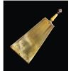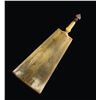 European powder flask that appears to be from the 19th century. Tip is brass but rest of flask is of horn construction. 9 1/2" overall length. CONDITION: brass is a dark patina with oxidation. Sprout shows a crack, flask shows a small chip at bottom, scattered dings, flaking & scratches. (02-25349/MJC). $300-500.