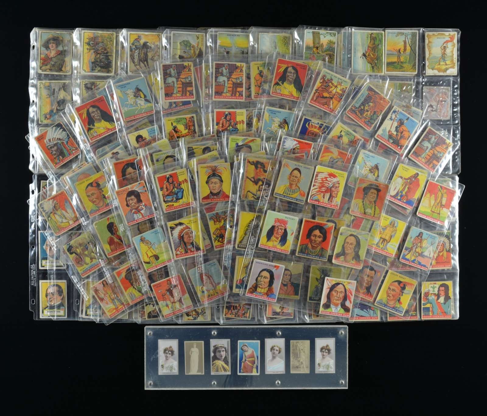 1) 188 Indian Gum Trading cards by Goudey Gum Company of Boston, Massachusetts. The cards depict various Native Americans, cowboys & soldiers. There is some duplication but the vast majority of cards are different.