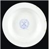 CHINA BOWL. 9” diameter, 1.25” deep, 2.5” blue CSN insignia of fouled anchor over crossed cannon surrounded by cotton and tobacco wreath (the wealth of the South), beneath is Confederate navy motto: “AIDE TOI ET DIEU T’AIDERA” translates “God helps those that help themselves”. Confederate Naval china has been sought & collected not soon after the war ended. Most pieces known are scattered among prominent museums and institutions, donated by Confederate naval officers or their families. Very few pieces have reached the collector market and these are only the 2nd & 3rd pieces to ever be sold at auction. Official Confederate Naval china is all made and bears the mark of “GENUINE IRONSTONE CHINA / E. F. BODLEY & CO / BURSLEM”. There is one identical soup dish in museum collection, a saucer with same decoration is attributed to CSS TEXAS. All confederate naval China pieces are rare. CONDITION: good very good overall, 4 chips on rim as can be seen in photos, makers mark and insignia are excellent. (02-19063/JS). $8,000-12,000.