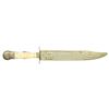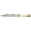 ROGERS BOWIE KNIFE. 14” overall, 9” clip point blade etched in large script panel: “DEATH TO ABOLITION”. One of the earliest motto’d Sheffield knives and among the most historic and iconic messages seen on antebellum American Bowies, its etched sentiment being culpable for starting the Civil War. Very few “DTA” knives exist with this script style and floral background motif. An 1838 anti-slavery broadside is known to exist with a drawing of this same motto on a blade, but with block lettering as seen on most examples. Blade is stamped on ricasso “JAMES ROGERS / CELEBRATED / MAKER. SHEFFIELD”, heavy cast German Silver grip with German silver pinned ivory slab grips, German silver escutcheon, sculptured cross guard, and clamshell pommel. Its original and rarely seen German silver, relief repousse sheath fits knife perfectly. This is a great opportunity for those with a keen interest in collecting Confederate. Its script motif, fine high-polish blade condition and complete scabbard offer a rare opportunity to add to any exceptional collection. CONDITION: One of the finest of the “DTA” knives this writer has seen. Fine overall, blade retains 90% original polish and lustrous etching with areas of black staining and blood pitting. Point worn. Maker’s mark and etched panel are crisp and complete. Ivory slabs sound and well fit, a small ivory chip on each side of one slab pin. The original embossed German silver sheath still retains its composite lining, which is almost always missing, frog button still attached, minor small dents and stains. (02-19433/JS). $25,000-45,000.
