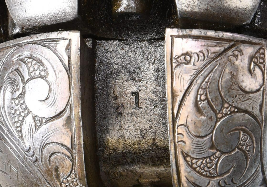 Not every item included in this auction has been completely disassembled to verify internal component’s origins. However, if we have made the statement that the item is “all matching” or “internal numbers match”, we guarantee that this information is accurate. If an item’s description does not list the status of the internal components, we do not guarantee that they are original, matching or that they are period. If you would like additional information concerning internal components of a firearm that does not mention the internal components in the description, please contact us at 207-453-2114 and our consultants will be happy to assist you at their earliest availability.