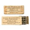 MODEL 1918 MKI PEDERSEN DEVICE WITH 2 BOXES OF ORIGINAL CARTRIDGES. Cal. 30 Pedersen. S# 12892. Bbl. 3 9/16". The device has an overall length of 12 1/2". Slide is marked on top right "REMINGTON - BRIDGEPORT / PEDERSEN'S PAT'S. PENDING". Marked on left side, oriented to be read from the right "U.S.A. 1918 - MARK I 12892" (S#). The device has no visible inspectors’ marks. Commonly referred to as the "Pedersen Device" the official nomenclature was "U.S. Automatic Pistol, Cal. .30, Model of 1918". The pistol terminology was adopted in order to maintain secrecy as it was hoped to use a large number of these devices in the planned spring offensive of 1919 which did not take place due to the Armistice in Nov. 1918. The device was designed by John D. Pedersen, a well-known firearms designer affiliated w/ Remington Arms Company. The concept of greater firepower in the hands of the infantry using the standard bolt action service rifle in a fast-firing semi-auto mode was appealing to the ordnance department & also met the approval of General Pershing who commanded the American forces in France. The device which showed much promise and was taken to France and tested. It greatly impressed General Pershing who recommended its adoption and initial purchase of 100,000 of the devices. The hope was the additional firepower would help break the deadlock in trench warfare. There were additional plans to adopt modified devices for the Model 1917 rifle and the Russian Mosin Nagant. The modified 1903 Springfield rifle which accepted the device was called "U.S. Rifle, Cal. .30, Model of 1903 Mark I. In order to provide the increased level of firepower the device used a pistol sized cartridge and allowed for the use of a standard service rifle with the added ability to quickly change back to full powered ammunition when the need arose. This change was easily accomplished by the soldier in the field who simply removed the service bolt and placed it in the issue canvas carrying case. He then took the device from its metal carrying case and inserted it into the rifle, locking it in place by pushing down the magazine cutoff. A 40-rd. mag. was inserted in the device to complete the change. When needed the process was easily reversed. The devices were produced after WWI until 1920 w/ approx. 65,000 completed. Additional 1903 Mark I rifles were made until the late 20s when production ceased. After a number of service tests interest in the devices waned & the majority of them were destroyed by burning in 1931 leaving a few intact examples & some devices assembled from parts salvaged from destruction. MAGS: 1 – 40 rd. marked "TP" and is provided w/ numbered viewing slots facing the firer to account for the number of cartridges remaining. Mag. is in good condition retaining most of its original finish however the feed lip on the left side is bent inward notably more than the right side. UNATTACHED ACCESSORIES: original unmarked steel carrying case w/ hinged lid and belt hook. Case has light wear retaining a large degree of original dark green parkerization. 2 original 40 rd. boxes of .30 auto pistol ball cartridges. The tan boxes are marked on top "40-CAL. 30 AUTO. PISTOL BALL CARTRIDGES / MODEL OF 1918 / THE REMNGTON ARMS UNION METALLIC CARTRIDGE COMPANY, INC. / BRIDGEPORT, CONN.". Cartridges are head stamped "RA H 19" indicating that although the boxes are labeled Bridgeport, Conn. the cartridges were loaded at the Hoboken, N.J. Ammunition Plant. Boxes have wear sm. tears & light staining. One has taped reinforcement. Ammunition has spots of oxidation but generally good appearance. Also included are 2 reproduction combination wrenches. Wrenches are marked "U.S.A. MARK I REMINGTON – BRIDGEPORT". Lightly worn wrenches w/ gray phosphate type finish. Leatherette padded carrying case. CONDITION: device has been restored w/ 80% of its lightly worn arsenal rework type parkerized finish remaining. Slide has black finish. The forward portion of the device resembles an empty cartridge case & has shallow rifling. PROVANANCE: from the Estate Collection of Thomas J. Mulligan. (23-2224/RW). CURIO $7,000-10,000.