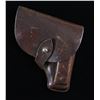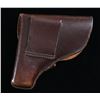 MODEL 1934 HOLSTER. 1 of only 500 leather M/34 holsters mfg. in Oulu, Finland by Veljekset Astrom Nahkatehdas for the Finnish Civil Guard. Brown leather construction, with steel closure flap stud. Closure flap is marked with a deer above "OULU" within a circle, followed by a Finnish Civil Guard "Sk.Y", below a Finnish army boxed "SA" (indicating subsequent Finnish army issue). This exact holster is pictured in figure 23-3 of "Holsters and Shoulder-Stocks of the World" by Anthony Vanderlinden. CONDITION: leather remains malleable, exhibiting some areas of wear and some scattered marks from handling and storage, with scattered areas of age related cracking and crazing (primarily present on the closure flap and mag. pouch). A very nice example of an extremely scarce and documented Finnish mfg. Beretta 1934 holster. PROVENANCE: the Estate Collection of Charles Wagner. (02-24303/MLW). $1,000-1,500.