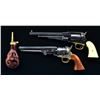 2) 1851 NAVY. Cal. 36. S# 393764. Repro. of Colt 1851 Navy revolver w/ 1996 Italian proofs. w/ 7 1/2" oct. bbl. w/ brass stud front sight. Blue finish bbl. & case colored frame. Brass trigger guard & backstrap. 1 Piece walnut grip. CONDITION: near excellent overall w/ minimal handling marks & pinprick oxidation. Cyl. notches show machining imperfections. Brass shows patina above trigger guard. Nipples still retain plastic caps. Near excellent bore. (01-21015/MD). BOTH ANTIQUE. $250-400.