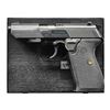 Cal. 9mm Parabellum. S# 037840. Bbl.3.5". Manufactured 02, 1984. Traditional double action, alloy frame, single stack pistol. Serrated slide w/ Blade front & windage adjustable rear sights. Serrated hammer spur & decocker. Bottom magazine release. Black Hogue rubber grips. Serrated front strap & front of trigger guard. MAGS: 2 factory 8 rd. UNATTACHED ACCESSORIES: Black plastic factory box, factory grips & German / English owners manual. CONDITION: Finish demonstrates light thinning on sides & high spots, as typically associated w/ repetitive holstering. Bright bore w/ sharp rifling. Fire control mechanism appears to function correctly when cycled by hand. (22-5389/JZ). MODERN. $600-900