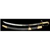 Overall length: 36". Blade length: 30". Single wide fullered blade decorated over half its length w/ bluing & gold highlighted, as well as white, etching. Etching includes a spray of arms, Federal shield, an eagle w/ ribbon in its beak that reads, "E PLURIBUS UNUM". Gilded brass hilt featuring a guard w/ spade languets & an unadorned knuckle bow terminating in a very well articulated eagle head pommel. Certifiably antique ivory grip w/ cut ribs. Gilded brass mounted leather scabbard. CONDITION: blade has a light gray patina w/ traces of original factory polish & some areas of scattered oxidation. Blue & gilt decoration is about 80% intact. Hilt shows areas of original gilding. Grip has 2 lg. age cracks but no noticeable losses. Scabbard mounts have much of the original gilding intact. Leather remains strong but is lightly flexed. (02-17536/BF). $800-1,200.