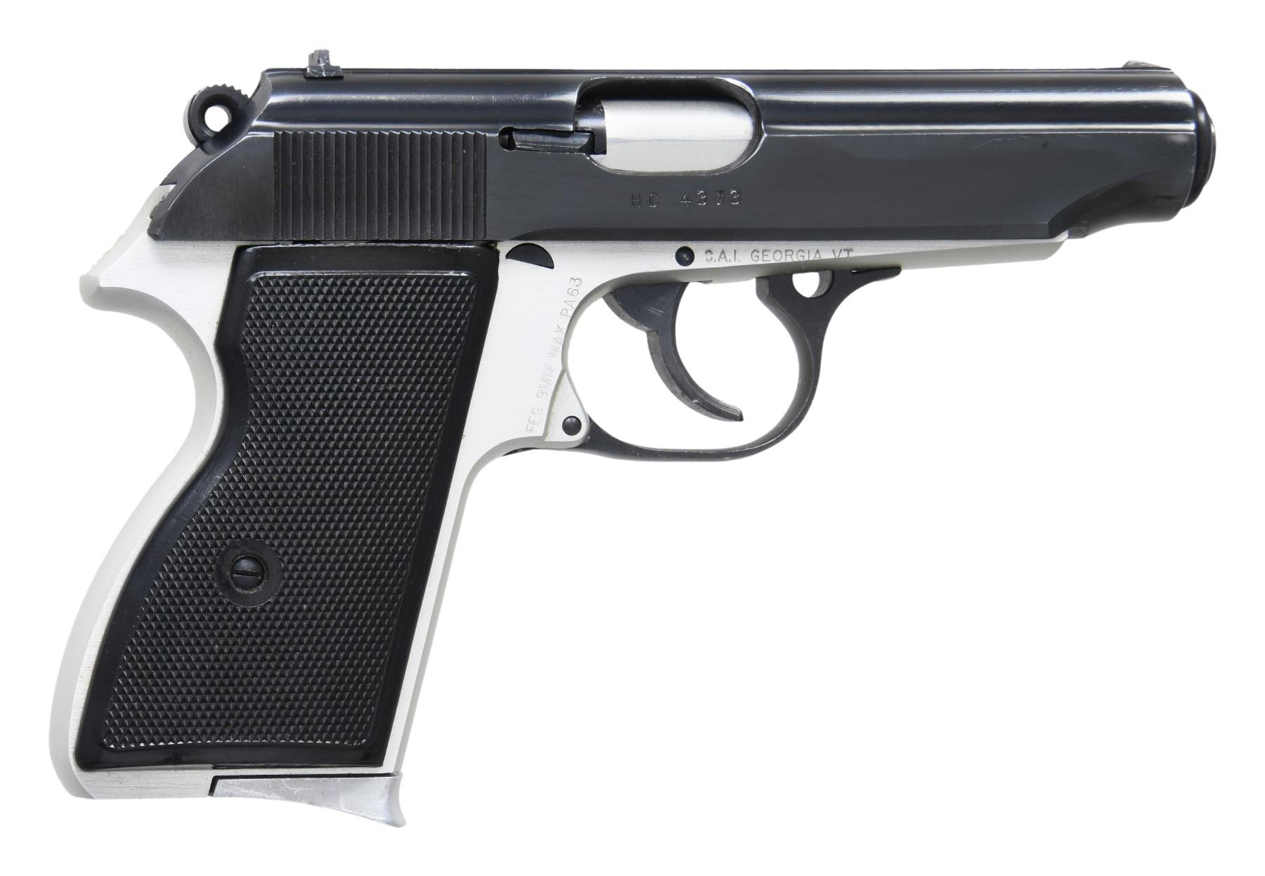 Cal. 9x18 Mak. S# HC4373. Bbl. Blade front sight. Fixed square notch rear sight. Matching numbers on slide & frame. Right side of frame has Century import marking. Blued slide. Aluminum frame. Checkered black grips with right handed thumbrest. MAGS: 2-7 rd. both matching numbered to gun & with added white paint on spines to designate what model pistol they are for. UNATTACHED ACCESSORIES: matching numbered importer box with cleaning rod & holster in poor condition. CONDITION: grips show some lgiht handling marks. Frame shows some scattered light handling wear. Slide retains 95% original blue with some small spots of light oxidation & sharp edge wear. Action functions properly when hand cycled. Near excellent bright bore. (25-3386/MJC). MODERN. $300-400.