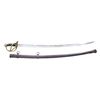 33" bright blade with small secondary fuller denoting this is import and not American made. Scabbard has double screwed throat with 2 mounting rings. CONDITION: very good overall, wire wrap is professionally restored, sound iron patina to well fit scabbard which is longer than blade. (02-24325/JS). NON-GUN. $400-500.