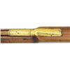 ANGSTADT ATTRIBUTED PENNSYLVANIA SMOOTH BORE FLINTLOCK RIFLE WITH ASSOCIATED POWDER HORN CIRCA 1810. Cal. 50. NSN. Beautiful “as-found” large bore “smooth rifle” Made in configuration and weight of rifle with rifle sights. 43" oct. to rnd. bbl w/ faceted transition and wedding rings. Brass blade front sight, dovetailed fixed notch rear sight, unmarked lock with bridled frizzen and rebated tail, flat serpentine cock, pin fastened full length maple stock, brass furniture, distinctive 4-pc patchbox patch box w/ whale's tail finial having borderline engraving. Other brass fittings include crescent buttplate, sideplate, trigger guard, thimble & nose cap. Simple hardwood ramrod is held by 2 round pipes. Joseph Angstadt worked in Kutztown, Berks County, Pennsylvania, 1800-1817. Mr. Browning displayed this rifle with simplistic nicely patinaed horn with simple checkering and notched area near tip which has contemporary brass spring loaded measure which appears contemporary to manufacture and not a later addition, plug has checkered knob with sling hole. This is a beautiful pair of very simplistic but elegant longarm and horn, now over 200 years old and no alterations from when made. This gun was used but well cared for. UNATTACHED ACCESSORIES: powder horn measuring 13 1/2" around the outside edge w/ brass spout & hardwood plug having a checkered knob. Front end leading to spout has relief carving followed by wedges of checkering. Also includes printed page of information regarding Angstadt family tree & handwritten collector notes. wedges of checkering. Also includes printed page of information regarding Angstadt family tree & handwritten collector notes. CONDITION: very good to fine overall and excellent for an original 200 year old American long rifle. This is the condition you want to find all Kentucky rifles. Iron has grungy brown/plum patina w/ light scattered surface corrosion & pitting especially at breech. Stock retains old finish on buttstock and protected areas of forestock, forestock has hand worn patina where handled, several long hairlines, one has inserted glue near nosecap on right side, few minor chips along bbl channel, unaffecting aesthetic. Brass has dark olive/mustard patina except patchbox which has been cleaned and has mottled mustard patina. Mechanics are functionable but mainspring is weak, dark pitted bore. Horn is overall very good with brass tip a little loose. PROVENANCE: Estate Collection of George W. Browning. (01-16152). ANTIQUE. $3,000-5,000.