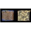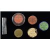 1) Rapley CT#14, Rare Colt Dragoon, 250 caps, white Eley label, paper wrapped, unopened, good overall, 1/2" chip in side of label, small reductions. 2) Rapley CT #17, for Colt Revolving Rifle, green ELEY label, wrapped in blue & gold paper, unopened, good, several chips in wrapping, label fine. 3) Rapley page 205, ELEY orange 500 caps for Thuer cartridges which were reloadable, very good. 4) ELEY orange 250 caps for Thuer cartridges which were reloadable, not shown in Rapley, good, label soiled. 5) Unmarked anodized cap tin & oval cylindrical steel spring loaded cap container, good. PROVENANCE: Martin Lane Historic & Western Americana Lifetime Collection. (02-21449/JS). $800-1,200.