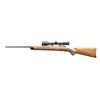 BOLT ACTION RIFLE WITH MATCHING FACTORY BOX. Cal. 22 LR. S# KAN25024. Bbl. 22". Model 22 Custom Match 25th anniversary bolt action rifle mfg. by Kimber in Yonkers, NY. The top of the bbl. is marked "25th Anniversary", with Kimber's mfg. information, followed by the cal. designation and "CUSTOM MATCH" on the left. Left side of the receiver is marked with the S#, followed by the Kimber trademark logo and "22". Metal components exhibit a satin blue finish overall, save for on the bolt body, which is jeweled. Finely figured 1-piece checkered wood pistol grip buttstock, featuring a checkered steel buttplate, black tipped forend, and 25th anniversary grip cap. Receiver is mounted with a Leupold VARI-X III 4.5-14x40mm scope. MAGS: one 5-rd. UNATTACHED ACCESSORIES: matching factory box. CONDITION: fine, with metal components retaining bountiful amounts of their original factory finishes overall, exhibiting few minute superficial handling marks. Mirror bore, exhibiting well-defined rifling throughout. Stock is very good, showing a few superficial marks from handling and storage. Scope retains a clear and sharp optic. Box shows some light exterior wear but otherwise remains sturdy and serviceable. (24-5914/MLW). MODERN. $5,000-6,500.