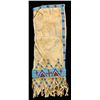 TOBACCO BAG. 17" x 6.25" overall including rawhide fringe, whiteheart red, dark blue, sky blue, white, & metallic silver sinew sewn beads, ocher paint. Mr. Mattox's tag identifies this bag as circa 1890 Sioux. CONDITION: good overall, beads & rawhide fringe appear complete. PROVENANCE: From the Lifelong Collection of Glen E. Mattox. (02-18911/JS). $500-800.