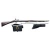 REVOLUTIONARY WAR RIFLE & ACCOUTREMENTS. Cal. 65. S# 8. 49" overall, 32" barrel with 2" screw breech. The Ferguson screw breech rifle is the rarest of all Revolutionary War long arms, with few originals surviving of the 100 manufactured, Ernie Cowan and Richard Keller reproduced this high quality rifle 20 years ago accompanied by matching angular flat bladed sword bayonet and cartridge box & sling. The screw breech is operated by the hinged trigger guard, turning it clockwise to pull the screw down. Ferguson and his men were mostly used as scouts during the war until he was badly wounded at the Battle of Brandywine in September 1777. Brandywine was a decisive loss for the army under Washington, leading to the capture of Philadelphia by the British. Patrick Ferguson nicknamed "Bulldog" by his men who continued to be prominent in the fighting in the South till finally killed at the battle of King's Mountain, NC in 1780. UNATTACHED ACCESSORIES: excellent 2015 copied article on Ferguson rifle by "The Armorer's Bench" a British website. CONDITION: excellent overall including accoutrements, mechanics are fine, bright shiny rifled bore. (01-26462/JS). ANTIQUE. $4,000-8,000.