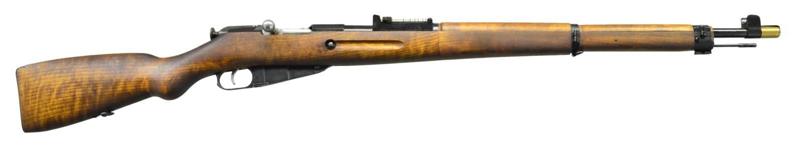 Cal. 7.62x54. S #38661. Bolt knob has matching S # other parts mismatch or unnumbered. Bbl. 27" with import marking on right side. Top of Bbl. marked with "SA" for Finnish army, B for Belgian made Bbl, D for D166 cartridge and a 1942 date. Left of bbl has Finnish proof. Left of receiver has importer added S #. Tangent rear sight graduated to 1000 meters. Front blade sight w/ protective ears. Cleaning rod is present. Provision for side and bottom sling. Hardwood stock w/ square splice joints ahead of grasping grooves. UNATTACHED ACCESSORIES: Brass muzzle cover. CONDITION: Hardwood stock shows some light handling marks. Metal retains 95% arsenal rework blue with some silvering on the exposed edges. a couple spots of blued over pitting and handling marks. Very good shiny bore. (22-2577/MJC). CURIO. $200-300.