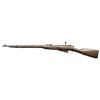 RIFLE. Cal. 7.62x54R. S# 4941. Bbl. 29". Mismatched numbers throughout. Top of bbl. marked w/ Izhevsk logo, 1936 date, S# & Finnish "D" marking. Left side of bbl. marked w/ boxed "SA" Finnish army marking. Bbl. has hole behind rear sight for deactivation. Right side of Bbl. marked w/ "41" Finnish capture marking. Right side of receiver has a rhombus symbol w/ what appears to read "RMA 10" in the center. Tangent rear sight graduated to 2000 meters. Finnish inverted V blade front sight w/out protective hood. Finnish replacement stock w/ finger joint under rear sight. Right side of stock has Finnish arrow cartouche. No cleaning rod present. Bottom mounted Finnish sling slots. CONDITION: stock has added finish w/ a few scattered dings & handling marks. Bolt shows scattered oxidation most notably on cocking piece & handle. Balance of metal retains 80% Finnish arsenal reworked blue w/ some dings on buttplate, scattered light oxidation & thinning. Bore intentionally plugged to prevent cartridge entering chamber. (22-3767/MJC). CURIO. $100-200.