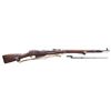 MILITARY RIFLE. Cal. 7.62x54R. S# 226410. Numbers match on receiver, bbl. & bolt. Round receiver is marked only by S#. Bbl. 28 3/4". Bbl. is marked over chamber w/ Izhevsk hammer & sickle over wreath & arrow inside triangle. Dated "1937". Marked on left side w/ boxed "SA" Finnish property mark. Import marked on right side of bbl. Tangent rear sight graduated to 2,000 meters. Post front sight w/ protective hood. Straight bolt handle. Cleaning rod is present. Hardwood stock set. Stock is Russian mfg. & has doweled repair of toe area. Metal lined sling slots. Handguard has brass tips. Green web sling w/ leather collars. UNATTACHED ACCESSORIES: 17" quadrangular spike bayonet. Bayonet is worn, retaining little finish. CONDITION: stock has moderate wear, staining & handling marks throughout. Reinforcing dowel at toe is proud of stock surface. Worn metal has turned mostly gray w/ traces of blue & spots of oxidation. Bore is turning dark w/ moderately worn lands. (24-6510/RW). CURIO. $400-600.