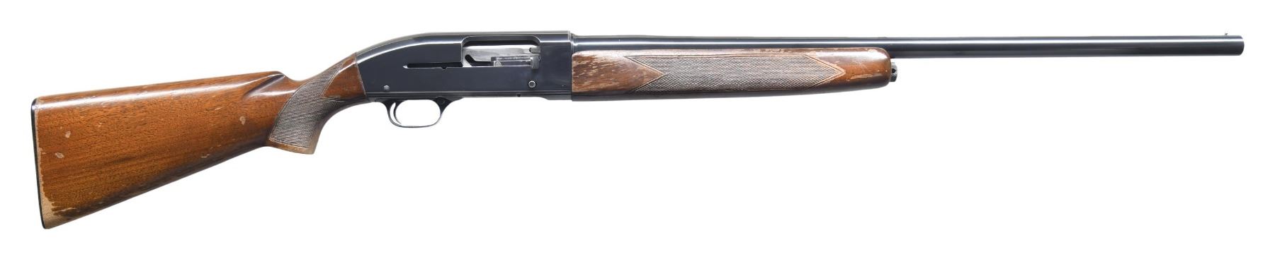 SHOTGUN. Cal. 12 Ga., 2 3/4". S# 9950. Mfg. 1954. Plain 28" bbl. w/ steel bead & "WS-1" Skeet marked choke. Steel receiver. Checkered walnut stock set. CONDITION: balance of blue is very good overall with large area of worn finish in carry area of receiver. Fair wood finish with large portions of peeling finish around checkering & buttplate. Good shiny bore with light fouling. (25-2488/MD). CURIO. $200-300