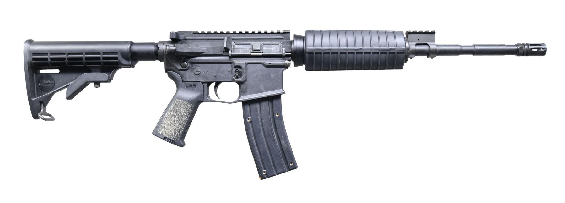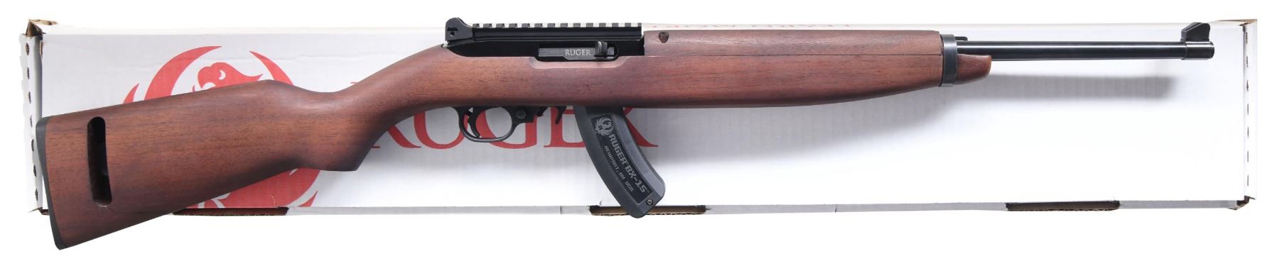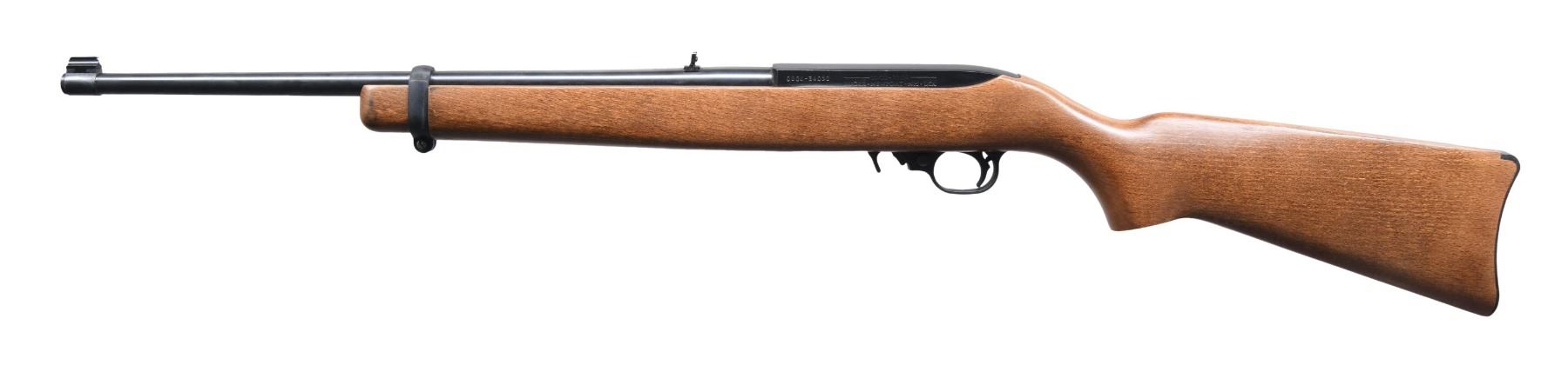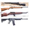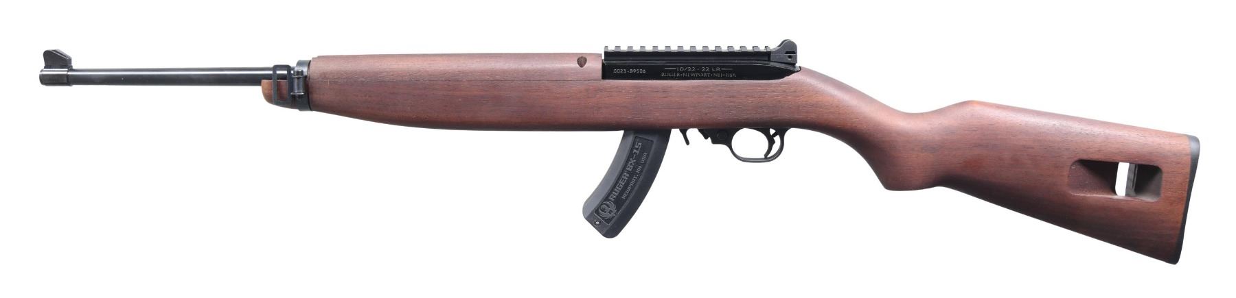 1) NEAR NEW SAVAGE RASCAL SINGLE SHOT BOLT ACTION RIFLE WITH MATCHING FACTORY BOX. Cal. 22 S, L, LR. S# 4123905. Bbl. 26". Rascal single-shot bolt-action rifle mfg. by Savage in Canada and imported by Savage Arms Inc. Top of the bbl. is marked with the model and cal. designations, as well as Savage's mfg. and patent information. Metal components exhibit a blue finish, save for on the bolt body, which is polished in-the-white. One-piece, textured black polymer pistol grip buttstock. Blade front sight with aperture rear sight. UNATTACHED ACCESSORIES: Matching factory box. CONDITION: Near new, with metal components retaining virtually all of their original factory finishes overall. Mirror bore, exhibiting well-defined rifling throughout. Stock is excellent overall. Box shows some exterior wear, with a large tear to the lid, but is otherwise serviceable. (24-7076/MLW). MODERN. 2) RUGER MODEL 10/22 SEMI-AUTO CARBINE. Cal. 22 LR. S# 0004-34050. Bbl.18 1/2" with banded brass bead front sight and folding leaf rear. Mfg. 2015 with model number 01103. Walnut stained hardwood stock with carbine buttplate. Late production example with polymer trigger guard assembly and extended magazine release. MAGS: 1 factory 10 rd. CONDITION: very good to excellent overall with minor handling marks on stock set and a small mark on barrel near front sight. Missing filler screws in scope base mounting holes. Near excellent bore. (24-7077/NW). MODERN. 3) NEAR NEW TALO EXCLUSIVE RUGER 10/22 CARBINE STYLE SEMI-AUTOMATIC RIFLE WITH MATCHING FACTORY BOX. Cal. 22 LR. S# 0023-89506. Bbl. 18 1/2". Talo distributor exclusive 10/22 Carbine (Model #21138) semi-automatic rifle mfg. by Ruger in 2023. Left side of the receiver is marked with the S#, followed by the model and cal. designations, as well as Ruger's mfg. information. Aluminum receiver exhibits a black enamel-type finish, with the bbl. exhibiting a blue finish. Plain wood M1 Carbine pattern buttstock and handguard. Blade front sight with aperture rear sight. Receiver is fitted with a black polymer Picatinny rail. MAGS: One 25-rd. UNATTACHED ACCESSORIES: Matching factory box. CONDITION: Near new, with metal components retaining virtually all of their original factory finishes overall. Brilliant mirror bore, exhibiting well-defined rifling throughout. Wood furniture is excellent overall. Box shows exterior wear and a couple of tears from handling and storage, but otherwise remains serviceable. (24-7078/MLW). MODERN. 4) WINDHAM WEAPONRY MODEL WW-CF SEMI-AUTOMATIC RIFLE WITH HARD CASE. Cal. 22 LR. S# CF014067. Bbl. 16 1/4". Model WW-CF semi-automatic rifle mfg. by Windham Weaponry. Left side of the receiver exhibits standard markings, denoting the model and cal. designations, Windham's mfg. information, as well as the S#. Black polymer receiver and flat top upper, with black polymer adj. buttstock, MAGPUL textured pistol grip, and short ribbed handguards. M4 profile CMMG Wasp .22 LR bbl. MAGS: 2 30-rd. UNATTACHED ACCESSORIES: black plastic hard case. CONDITION: good, with some superficial marks from handling and storage overall. Mirror bore, exhibiting strong rifling throughout. Polymer furniture is good overall. (24-7080/MLW). MODERN. $900-1,100.