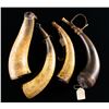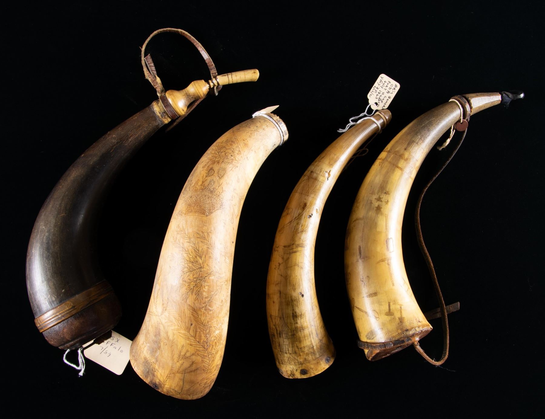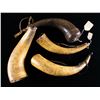 FOUR SCRIMSHAWED POWDER HORNS.