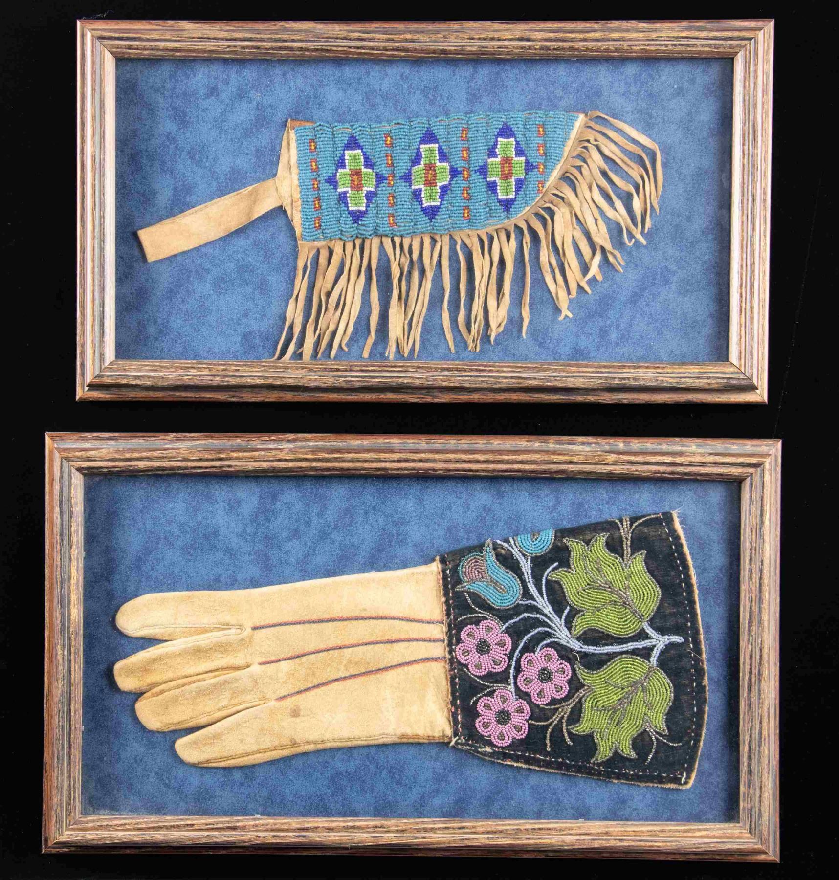 FRAMED DECORATIVE NATIVE AMERICAN GAUNTLET & KNIFE