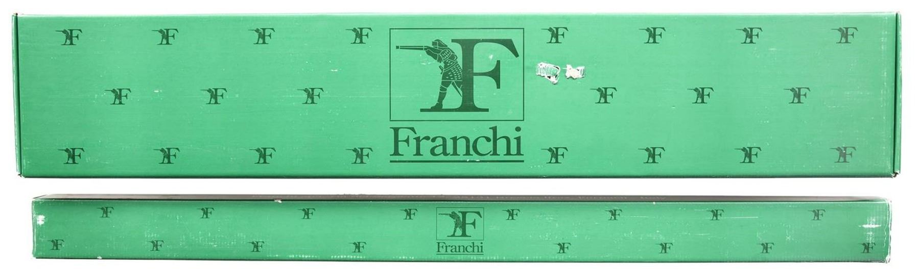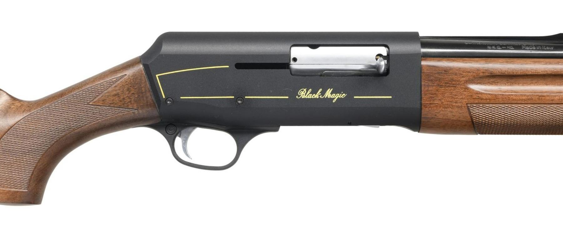 SEMI-AUTOMATIC SHOTGUN. Cal. 12 GA, 2 3/4". S# U48682. Bbl 26". 48-AL "Black Magic" semi-automatic shotgun mfg. by Franchi in Italy and imported by American Arms. Left side of bbl. with mfg. information and cal. designation, with right side exhibiting importer information. Left side of receiver is marked "LUIGI FRANCHI" and "48 AL 12", with "Black Magic" on the right. Matte anodized aluminum frame, with blued steel bbl. Checkered wood pistol grip buttstock and forend. Vent rib with brass bead front sight. Muzzle is fitted with an internally threaded Improved Cylinder choke. UNATTACHED ACCESSORIES: Factory Box. CONDITION: excellent, with metal components retaining bountiful amounts of their original factory finishes, exhibiting few superficial marks from handling and storage. Mirror bore. Wood furniture is excellent overall. PROVENANCE: The Collection of Gun Sport Ltd owned by Jon R. Thomas. (23-3619/MLW). MODERN. $500-800.