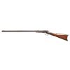 Cal. 32 RF. S# 6050. Oct. 28.25" bbl. German silver blade front sight & notch rear sight. Third type action w/ sliding extractor, front trigger for opening action & adj. hammer that can fire RF or CF. Walnut buttstock w/ crescent buttplate. CONDITION: barrel has gray/brown patina appearance with traces of blue, edge wear & spots of oxidation. Action has brown/gray patina appearance with faint traces of blue & light marks around sideplate. Buttstock has large cracks around buttplate & around wrist along with numerous handling marks. Good shiny bore. PROVENANCE: Estate of Groves Herrick. (01-28342/MD). ANTIQUE. $300-600.