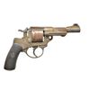Cal. 11mm. S# H57249. Bbl. 4 1/2". Mfg. 1886 w/ contemporary replacement fixed front sight & rear sight removed. All visible serial numbers match. Both SA/DA operation, w/ non fluted cylinder & finish “in the white” w/ checkered wooden grips. Frame is missing large screw below ejector rod. Action does not work. CONDITION: metal has heavy rust on the cylinder w/ lighter scattered rust throughout. Left grip panel has a full length glued repair. Bore is very good, bright w/ strong rifling & light pitting. (01-22094/CW). ANTIQUE. $150-250.