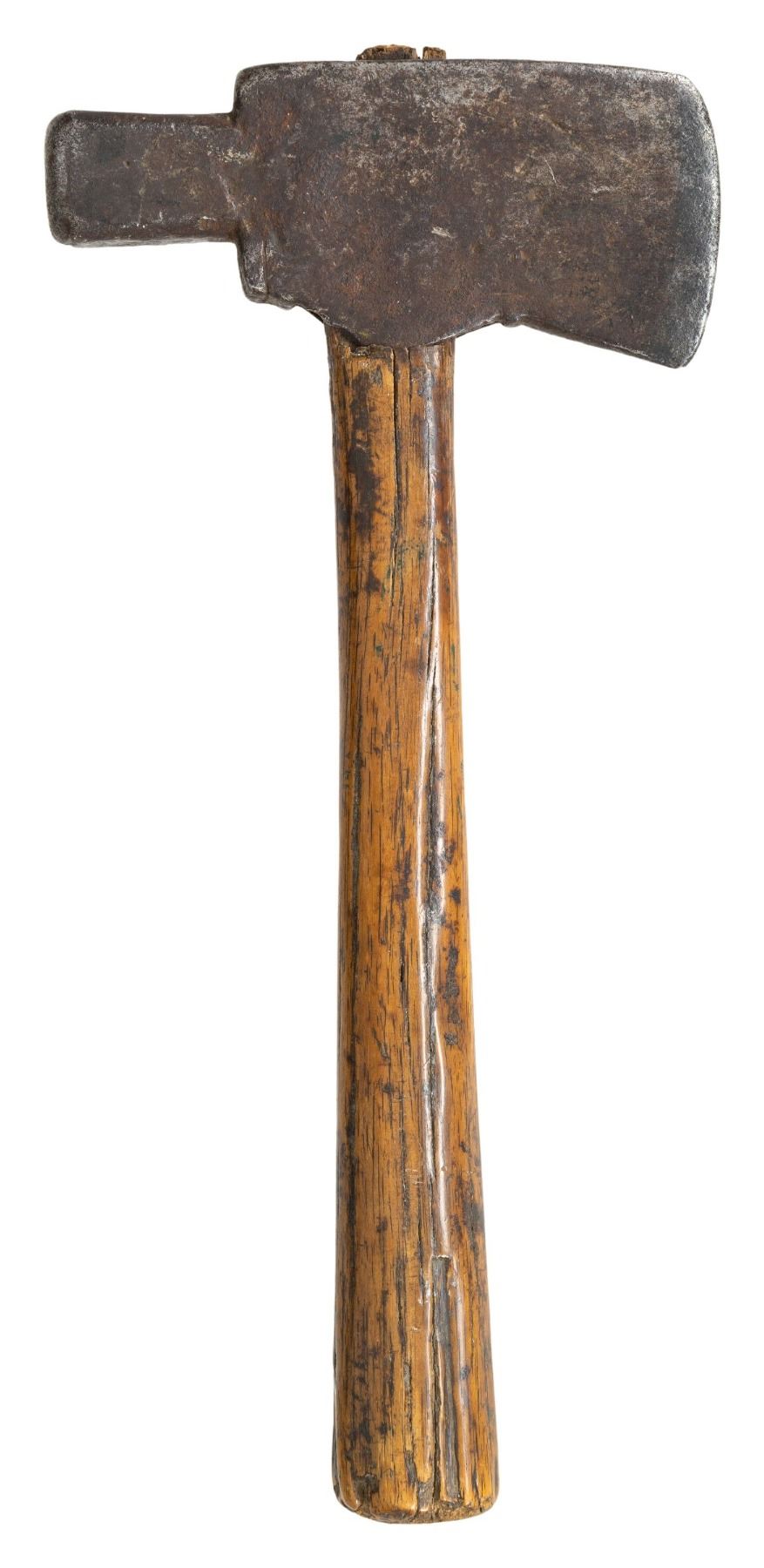 9" haft, 4.25" head. Similar small axes are commonly excavated in early American 17th & 18th century sites. They were essential frontier tool. CONDITION: very good overall, old sharpening. PROVENANCE: James R. Johnston collection. (02-26015/JS). NON-GUN. $800-1,200.