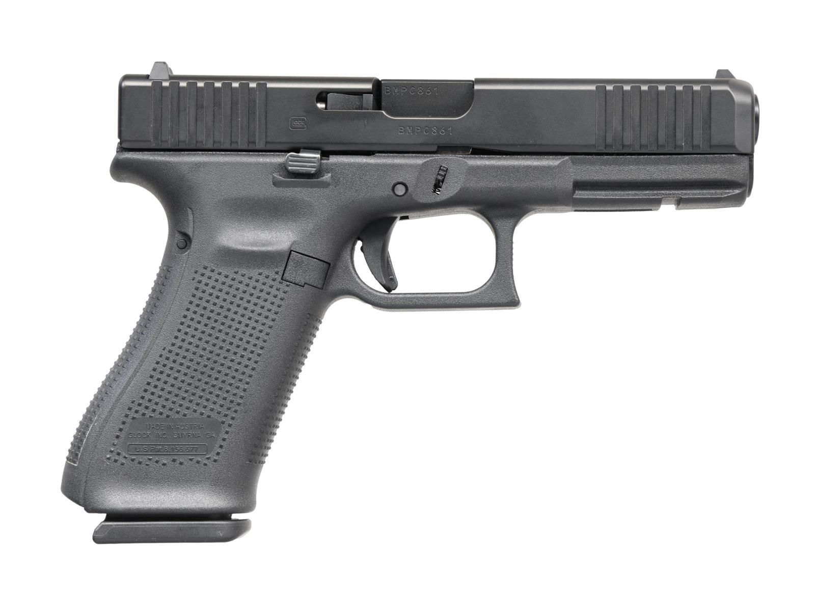 Cal. 40 S&W. S# BMPC861. Bbl. 4 1/2". Standard white outline Glock sights. Austrian made Gen 5 Glock 22 pistol. Matte black frame w/ accessory rail. MAGS: 3-15 rd. UNATTACHED ACCESSORIES: matching numbered factory hardcase w/ cleaning rod, manual, bore brush, cable lock, four grip straps & mag loader. CONDITION: all aspects near new, in the box. PROVENANCE: the Collection of Gun Sport Ltd owned by Jon R. Thomas. (23-4031/MJC). MODERN. $300-500.