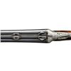 DRILLING. Cal. 16 Ga., 2 1/2" / 9.3x74R. S# 3824. The Shoe lump 26" bbls. w/ slightly raised matted rib having blade front sight, pop up rear sight & screw attached rib extension for crossbolt. Claw mounts have been installed by removing portions of rib that container the retailer's address; remaining retailer mark "FR NURNBERG". Pre Great War German Nitro proofs. Bottom bbl. has sling swivel. Herold trademark dbl. lump locking system designed to eliminate the side to side movement when the barrels are bolted to the action. Gray finished boxlock action w/ Greener style safety, crossbolt third fastened, cocking indicators, dbl. triggers, extractors & top tang bbl. selector. Receiver has semi relief floral scroll engraving that extends to bolsters, breech section of shot bbls., forearm iron & cratridge trap cover. Floorplate has trademark "Herold / Einstr, SCHUTZMAKER / SIMSON JAGER VERSCHLUSS / JAGER'S PATENT". Blued triggerguard. Schnabel tipped checkered walnut forearm w/ matching numbered Deeley release. Checkered pistol grip walnut stock w/ left side shadowline extended cheekpiece, sling swivel on toeline, horn grip cap & 4 cartridge trap on toeline. LOP: shortened to 13 1/4" to White Line ventilated recoil pad. DAC: 1 1/2". DAH: 2 7/8". MEASUREMENTS: Bore diameter: L - .655, R-.655. Choke Constriction: L - .23, R- .07. WEIGHT: 7.11 LBS. CONDITION: bbls. have been refinished w/ prior marks & pitting throughout along w/ muzzle wear, varnish over spray & pinprick patina. Receiver has gray appearance w/ patina & spots of light pitting. Left side underside rib shows separation at muzzle. Wood has been lightly sanded, refinished & refreshed the checkering. Wood has good appearance w/ light marks & prior sm. gouges. Fair horn grip cap. Fair shotgun & rifle bores w/ pitting, scratches & sm. dents. Action appears tight on face. (23-2157/MD). CURIO. $1,000-1,500.