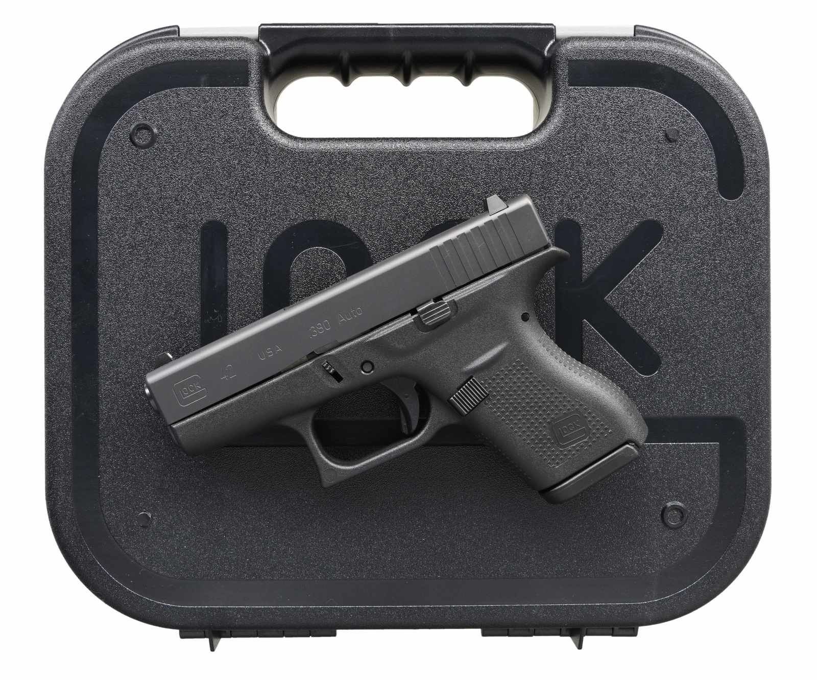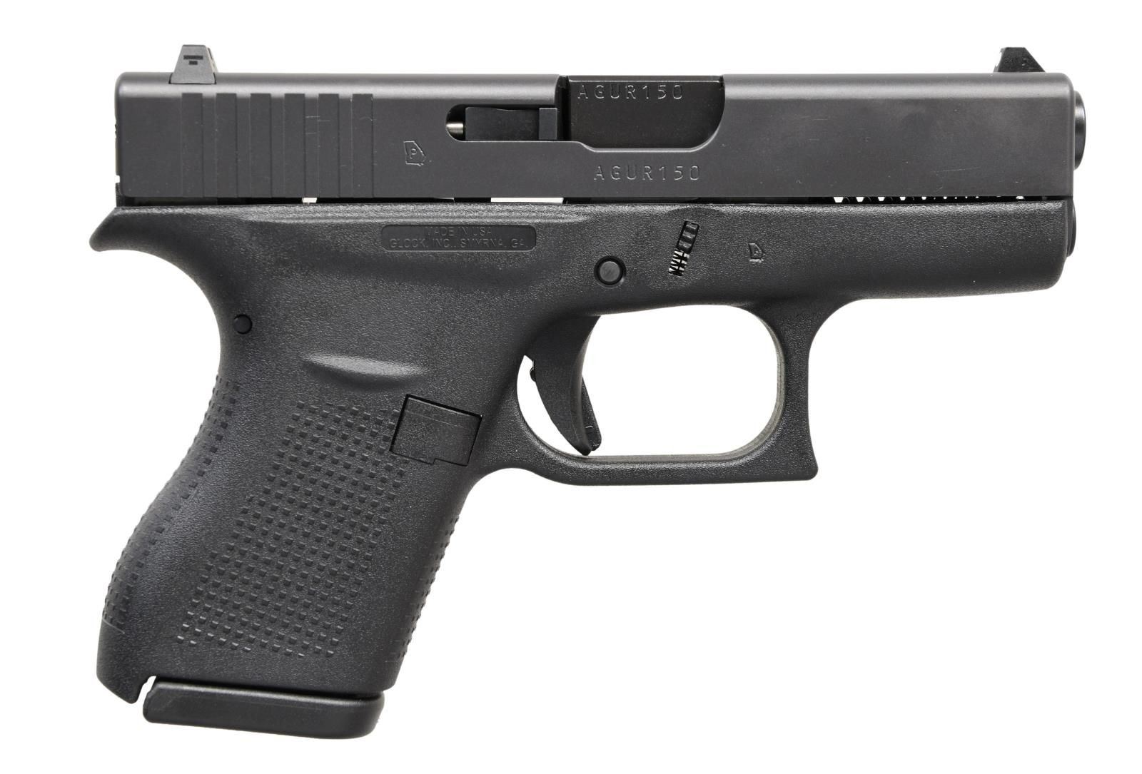 Cal. 380 ACP. S# AGUR150. Bbl. 3 1/4". Standard white outline Glock sights. Matte finished slide w/ rear serrations. Enlarged mag release. Black polymer frame. MAGS: 2-6 rd. factory. UNATTACHED ACCESSORIES: factory hardcase matching numbered to gun w/ foam inserts, mag loader, bore brush, paperwork & cable lock. CONDITION: all aspects near excellent. PROVENANCE: The Collection of Gun Sport Ltd owned by Jon R. Thomas. (23-2762/MJC). MODERN. $300-450.