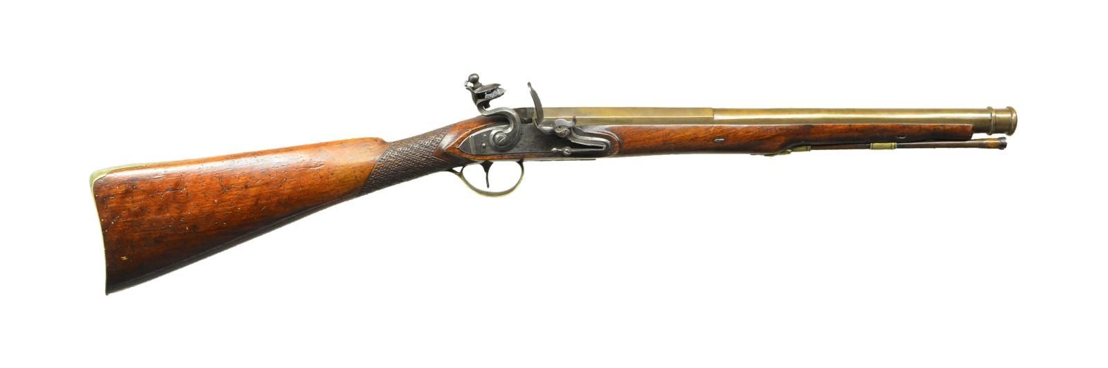 GOOD BRITISH BRASS BARREL FLINTLOCK COACH GUN.