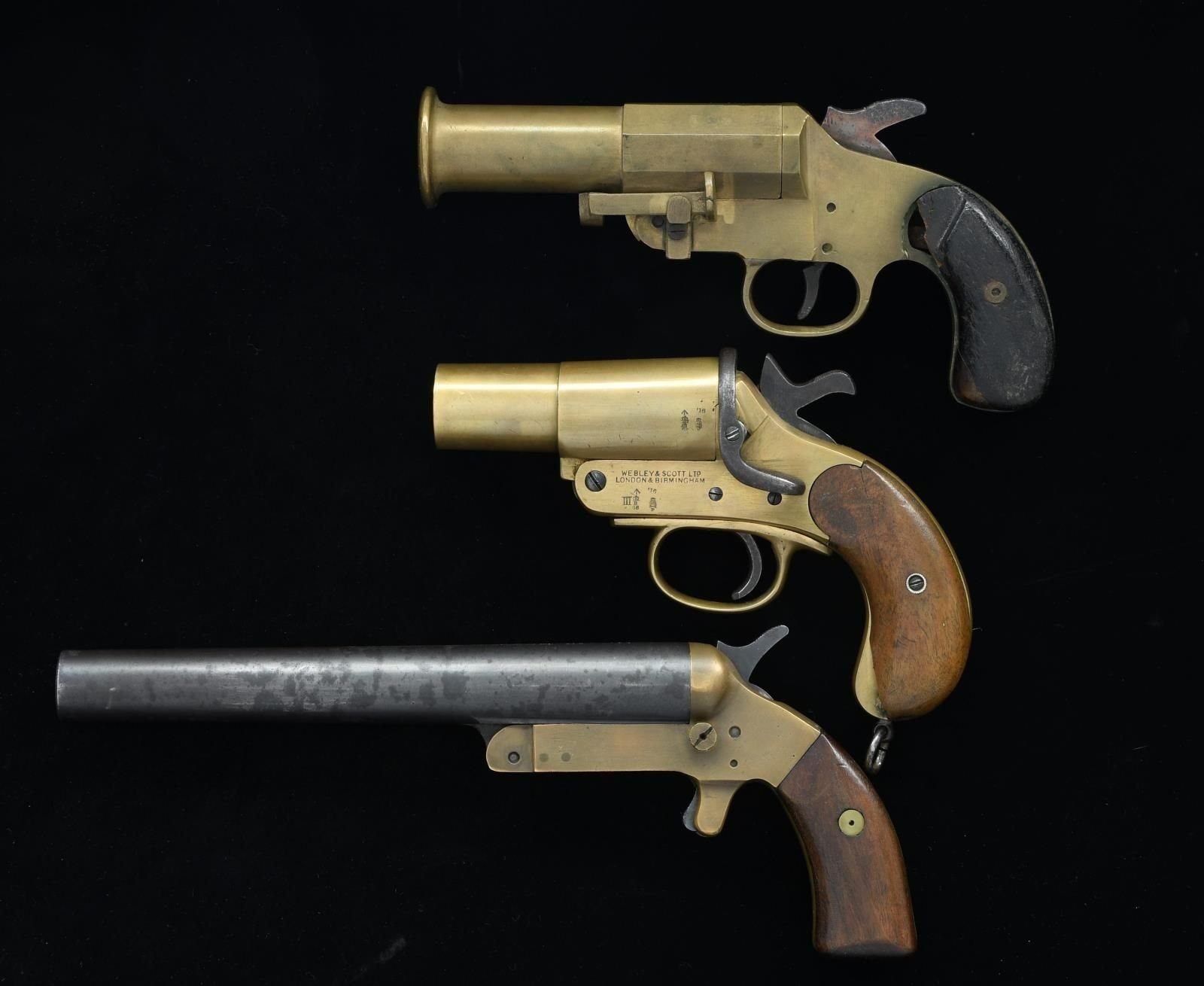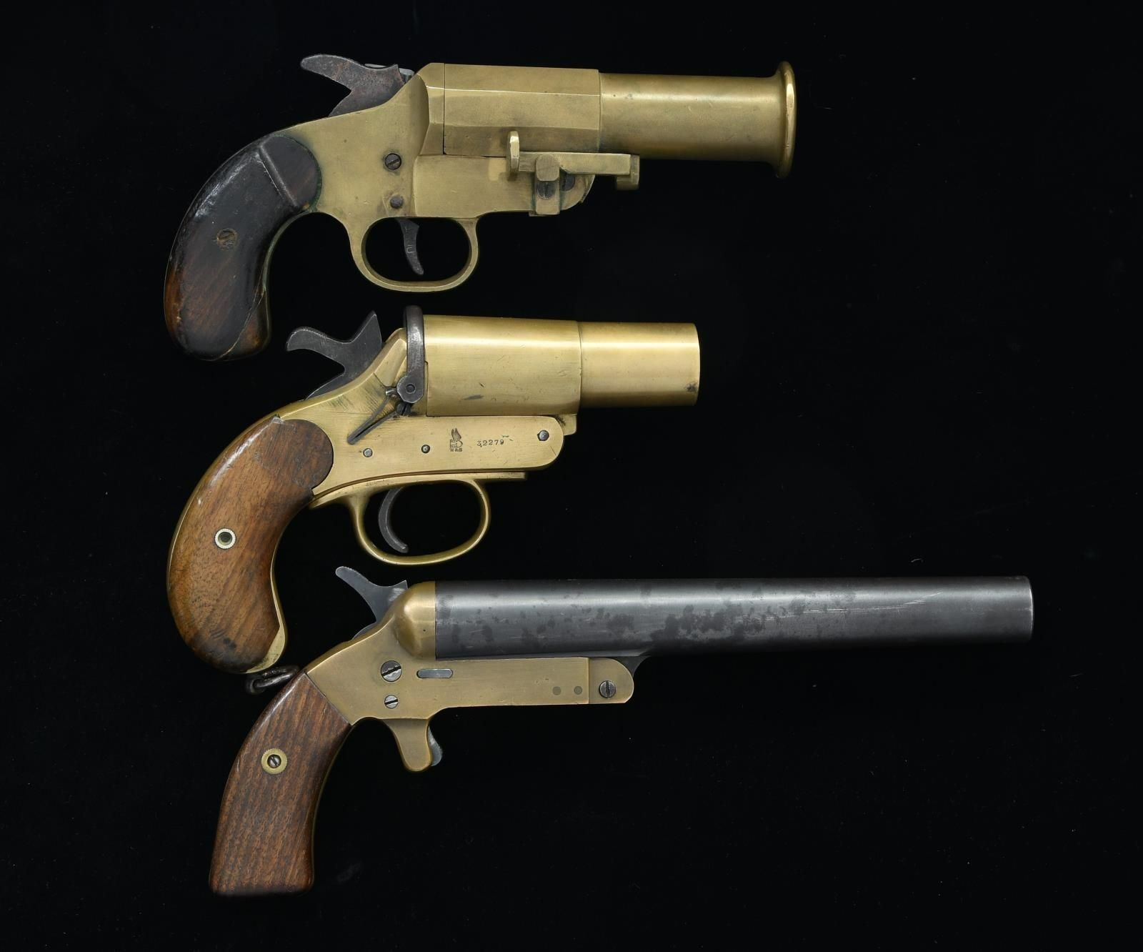 GROUP OF 3 FLARE GUNS: US REMINGTON, BRITISH