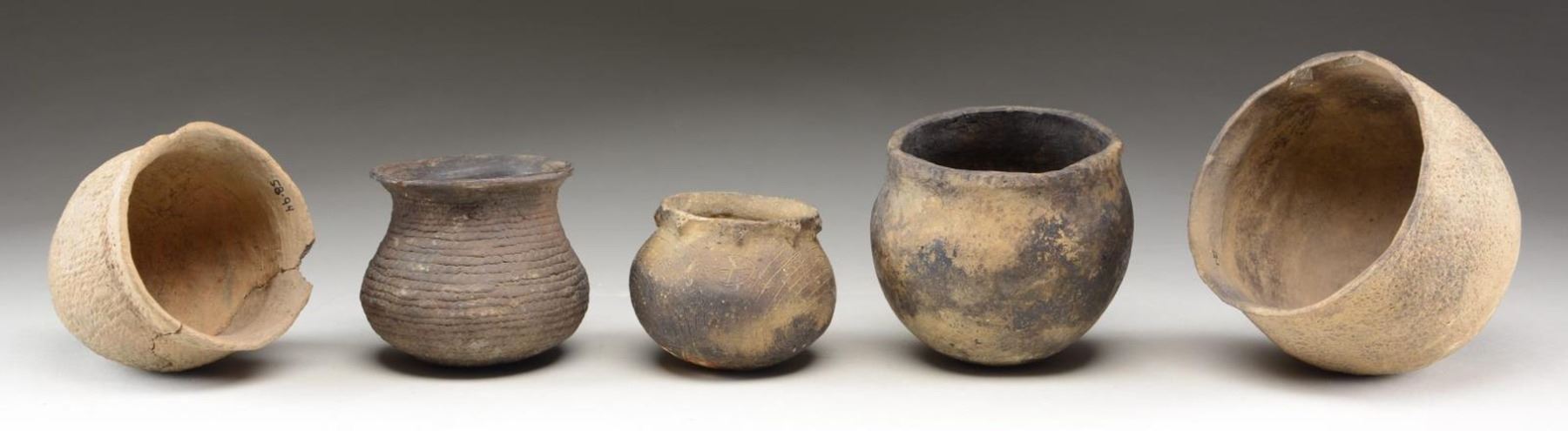 GROUP OF 5 MISSISSIPPIAN INDIAN POTS.