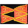 All five flags measure 12” x 20”, gold embroidered on red silk triangular guidons, 1” sleeve hoist with pair of ties at top and bottom, gold fringe. “BEST UNIT, AWARD ROTATION”. Four of the flags have different unit designations, and one has no unit designation. (02-18038-2/JS. $200-300.