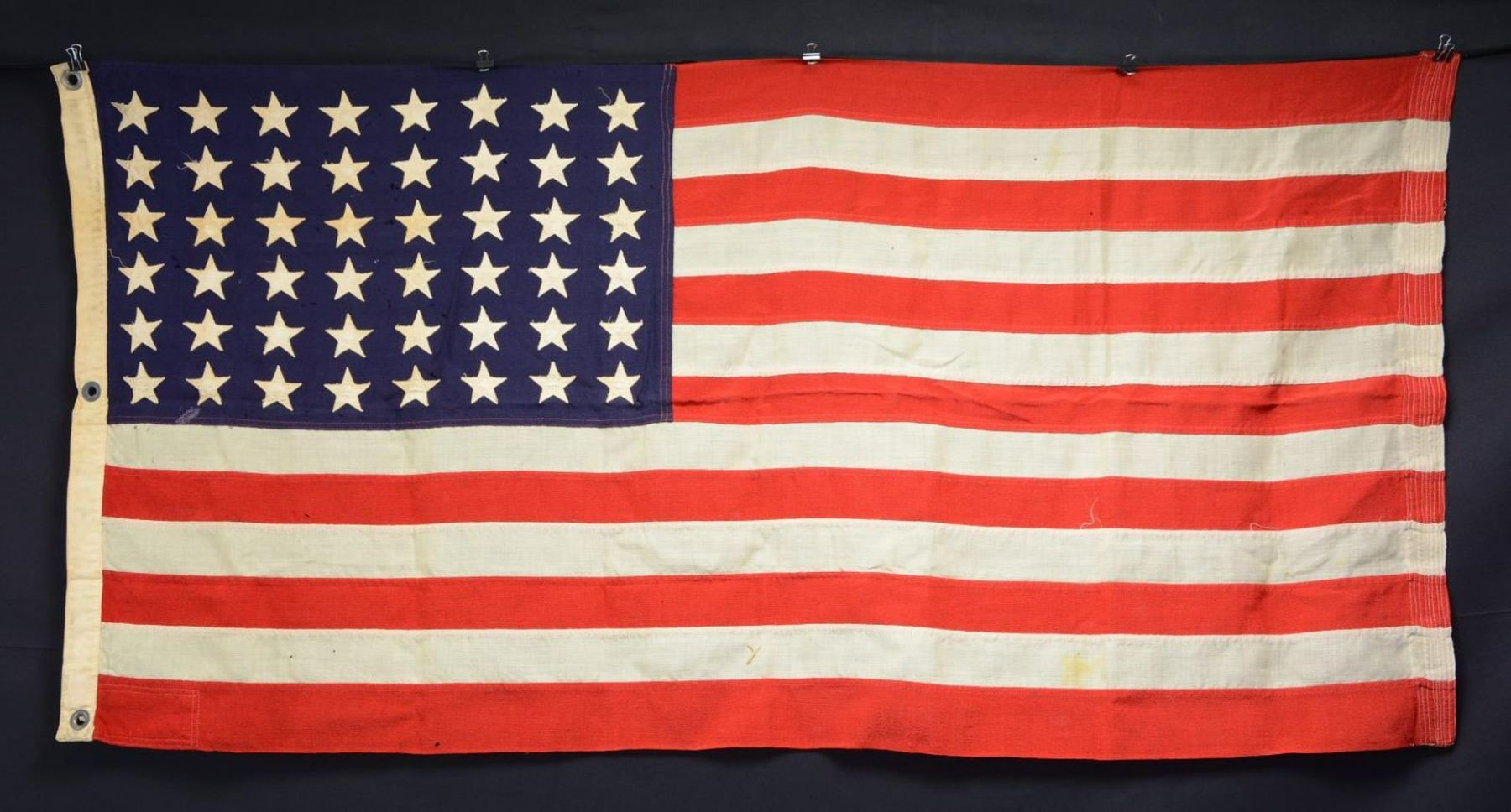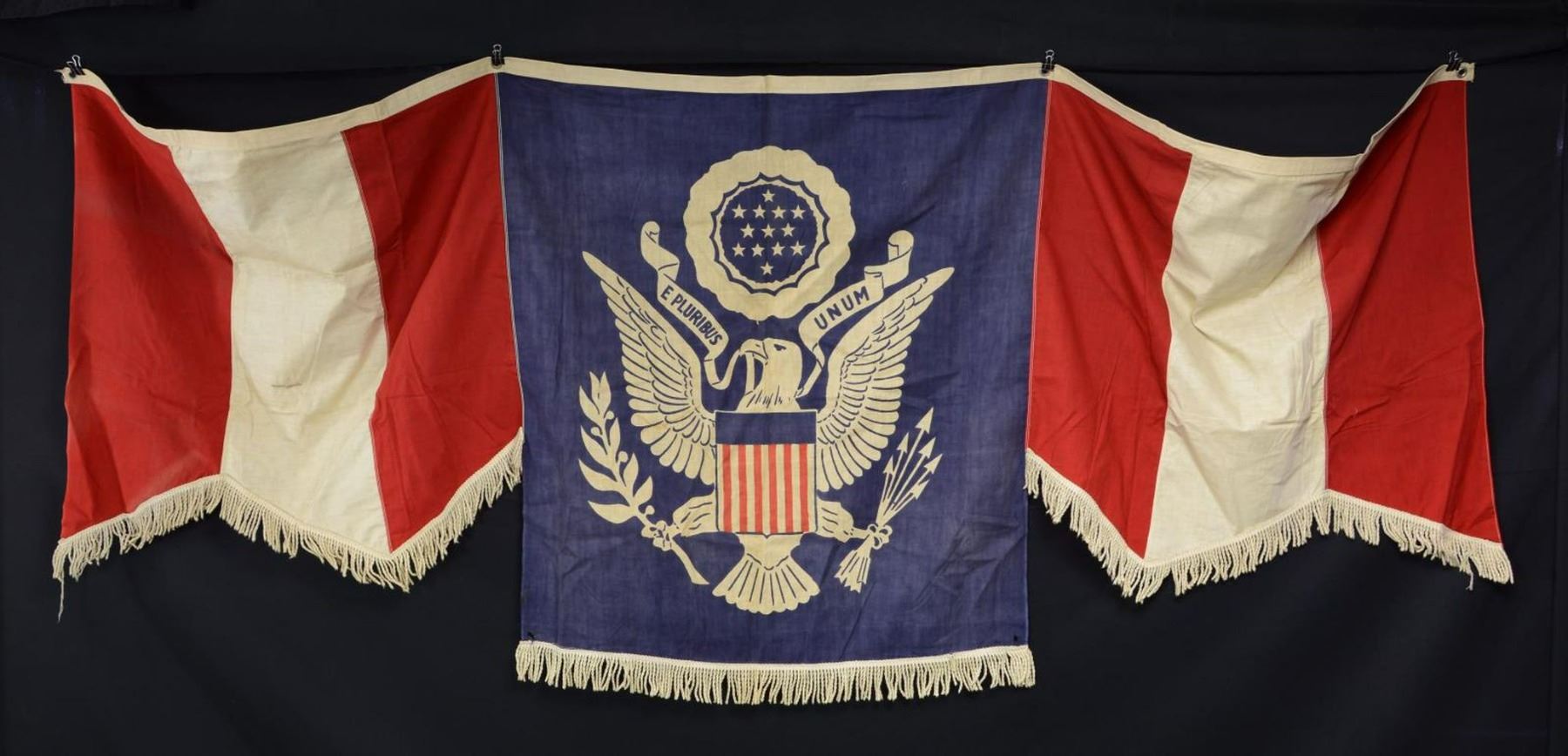 GROUP OF AMERICAN WW2 ERA FLAGS & BANNERS.
