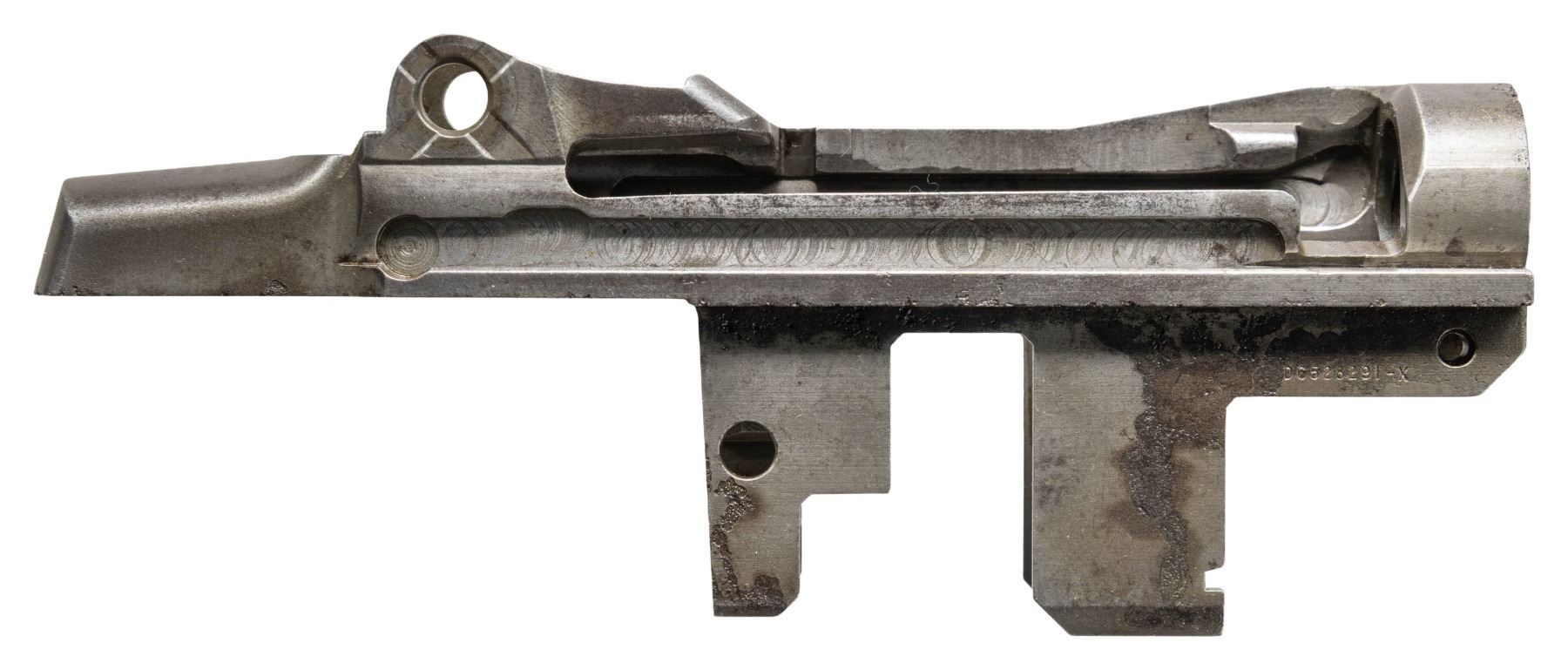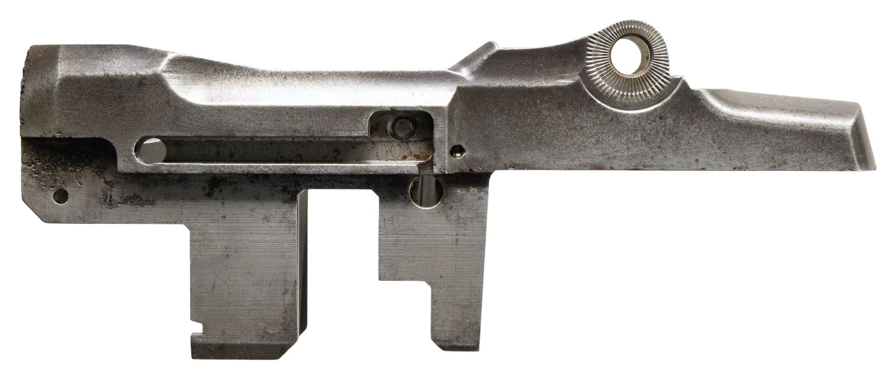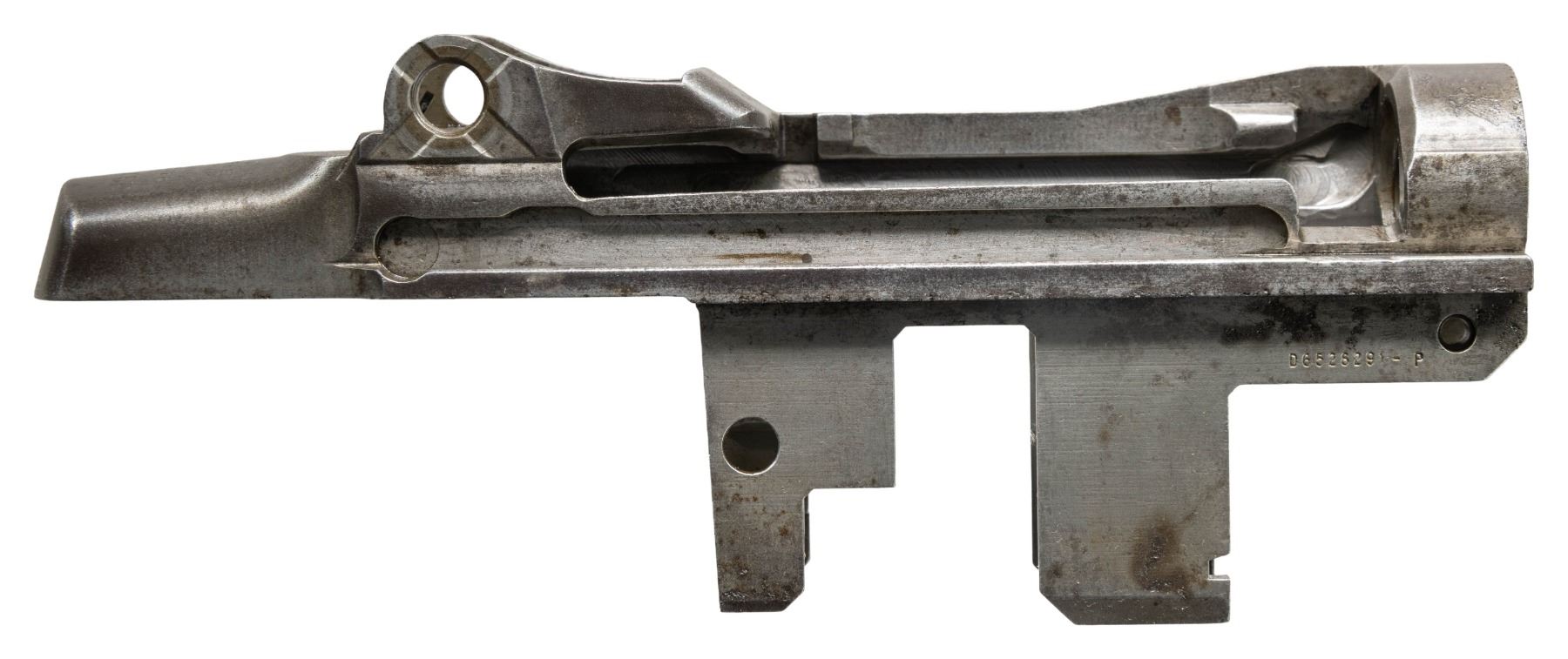 1). S# 5114111. Receiver marked at heel "U.S. RIFLE / CAL. .30M1 / INTERNATIONAL / HARVESTER / serial number". Marked on right forward end "D6528291-X". No parts are present. CONDITION: receiver has extensive wear & shallow pitting throughout w/ notably deeper pitting on front face of receiver ring. (25-2889/RW).