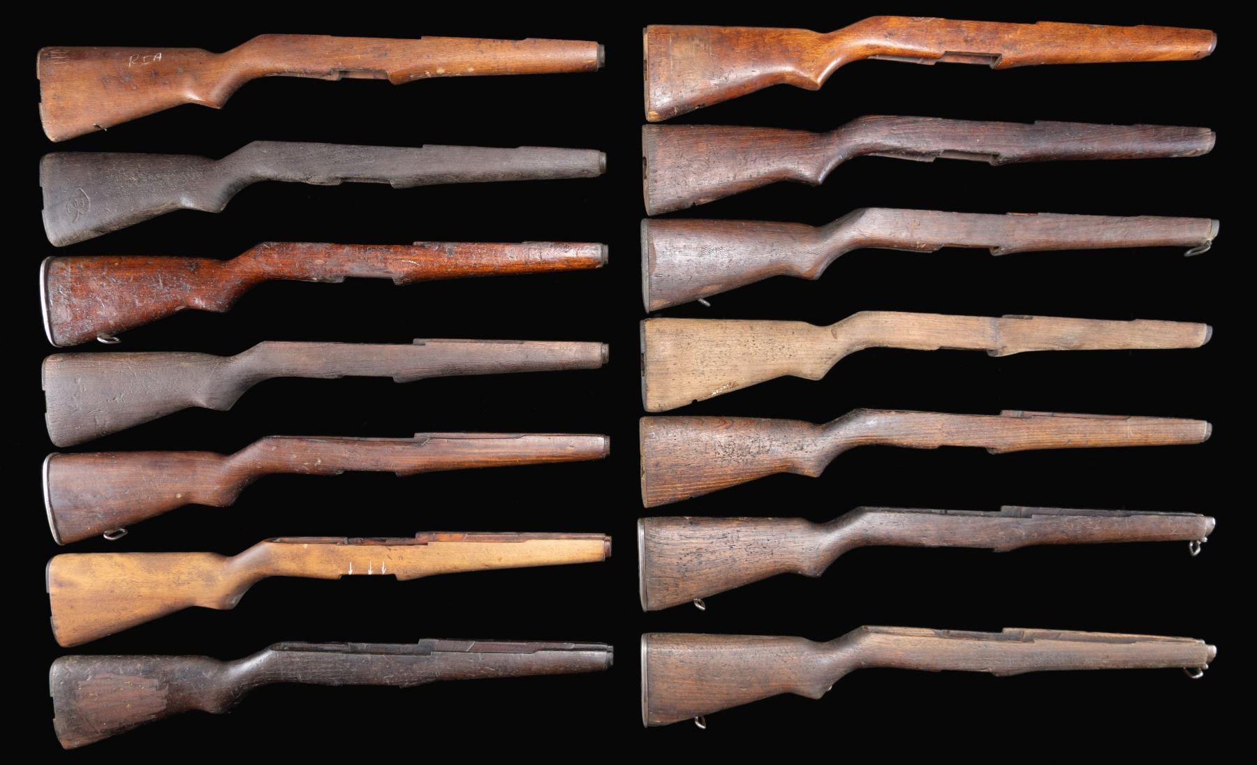 GROUPING OF 41 M1 GARAND RIFLE BUTTSTOCKS.