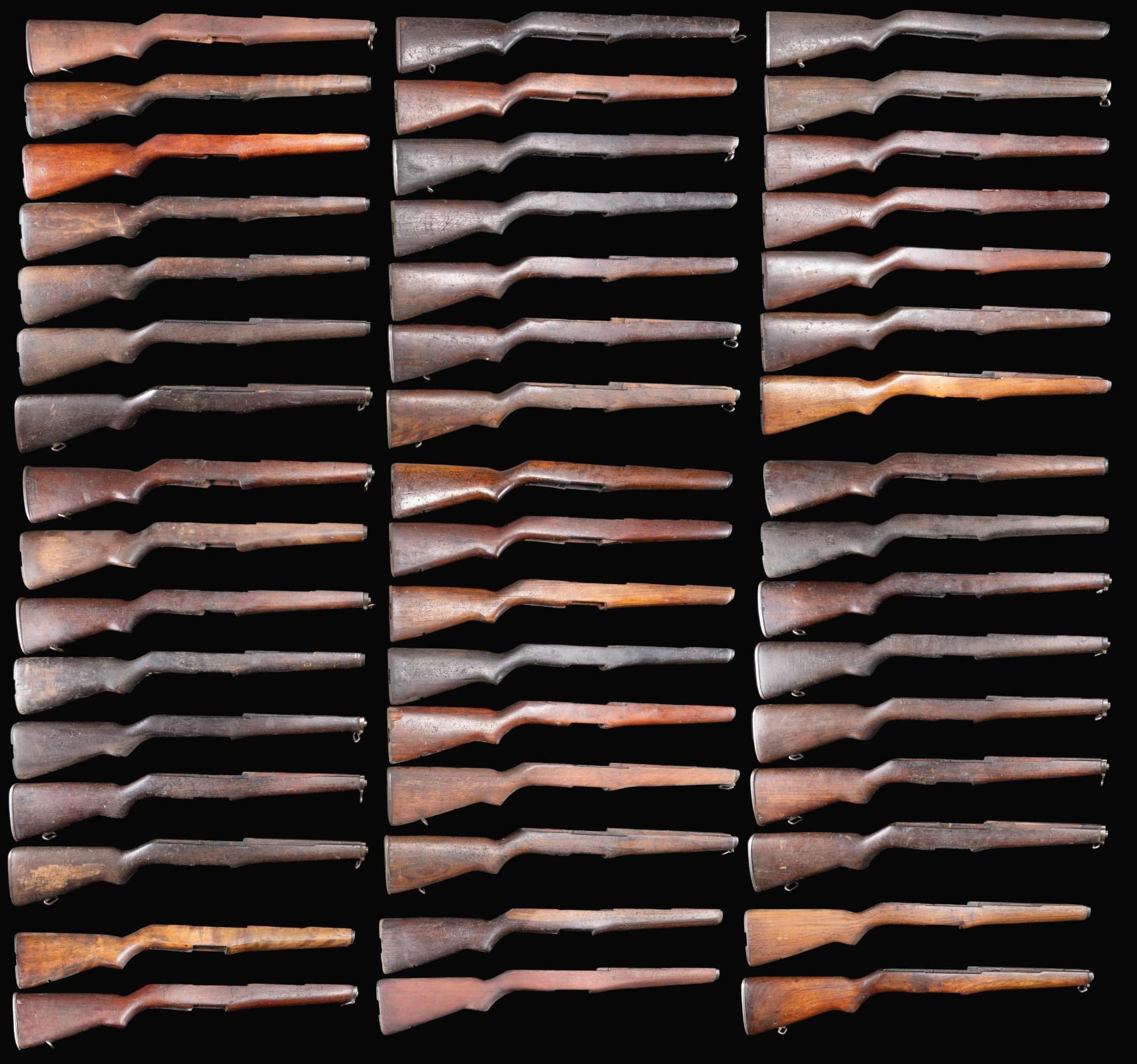 GROUPING OF 48 M1 GARAND RIFLE BUTTSTOCKS.