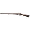 Cal. 65. NSN. The short lived model 1814 was produced to arm three regiments of riflemen for the War of 1812. Contracts of 2000 each were awarded to H. Deringer of Philadelphia, PA & R. Johnson. It is believed that lesser quantities were actually delivered. Bbl. 33 1/8" octagon to round with smooth bore, possibly rebored from 54 cal. Dovetail mounted brass blade front sight with fixed V notch rear sight. Top flat behind the sight is marked "H. DERINGER / PHILADa". Top flat between the rear sight and bbl. band has added markings "OONi G. HAY" followed by unit markings "1r 1si B 4th D". Left bbl. flat has "eagle / P / US" markings. Lock plate is marked "US / H. DERINGER / PHILADa". Lock only has been reconverted to Flint. Barrel is original. Brass pan with iron frizzen marked "D". Three band fastened full length cheekpiece walnut stock. Original swivels hold a rarely found original style leather sling. Brass tipped iron ramrod. Iron fittings include buttplate, trigger guard with 2 finger ridges, side plate, and stock bands with stud type fasteners. Large oval iron patchbox is reminiscent of the model 1817 Common Rifle. CONDITION: NRA Antique good to very good. Bbl., lock and iron fittings exhibit a light brown patina in appearance with scattered handling marks as well as spots of light pitting. Bbl. markings are slightly weakened. Unsanded stock has worn finish showing numerous dents and handling marks with small chips behind top tang and forward of lock. Small cracks are found behind the lock and forward of the rear of side plate screw. Lock shows wear. Bore has dark frosted appearance with spots of light pitting. Scarce intact original sling has dark appearance with age hardened and cracking finish. (01-24666/DS). ANTIQUE. $1,500-2,500.